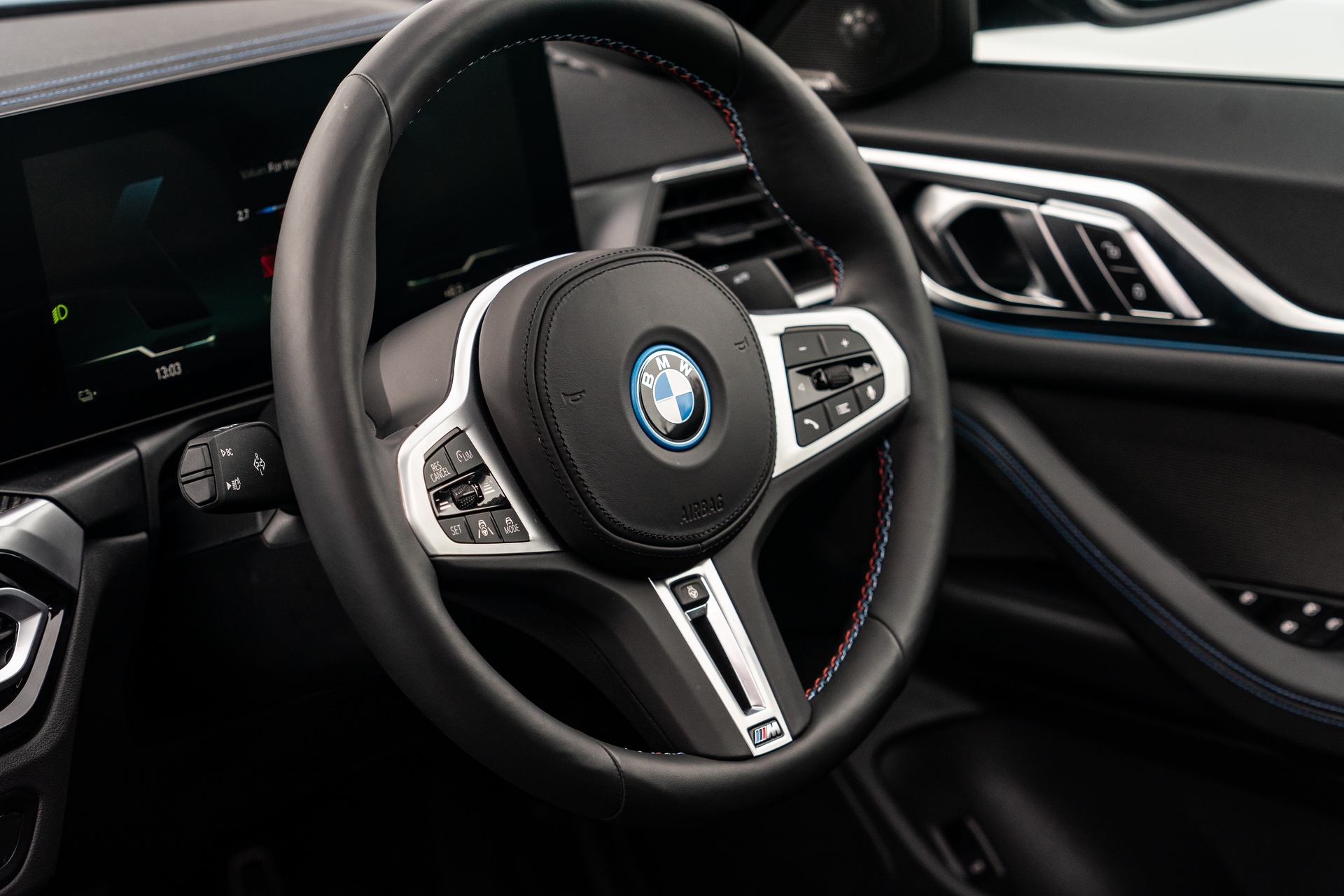 Coming from the UK is a new set of photos showcasing the BMW i4 M50 in Dravit Grey. The dark gray paintwork is complemented by the M50-exclusive accents in Cerium Gray. This particular BMW i4 was also equipped with 20-inch double-spoke 868 M bi-color light alloy wheels, instead of the typical aero wheels we’ve seen so far. In addition, BMW also included a set of red brake calipers to go with the darker theme.