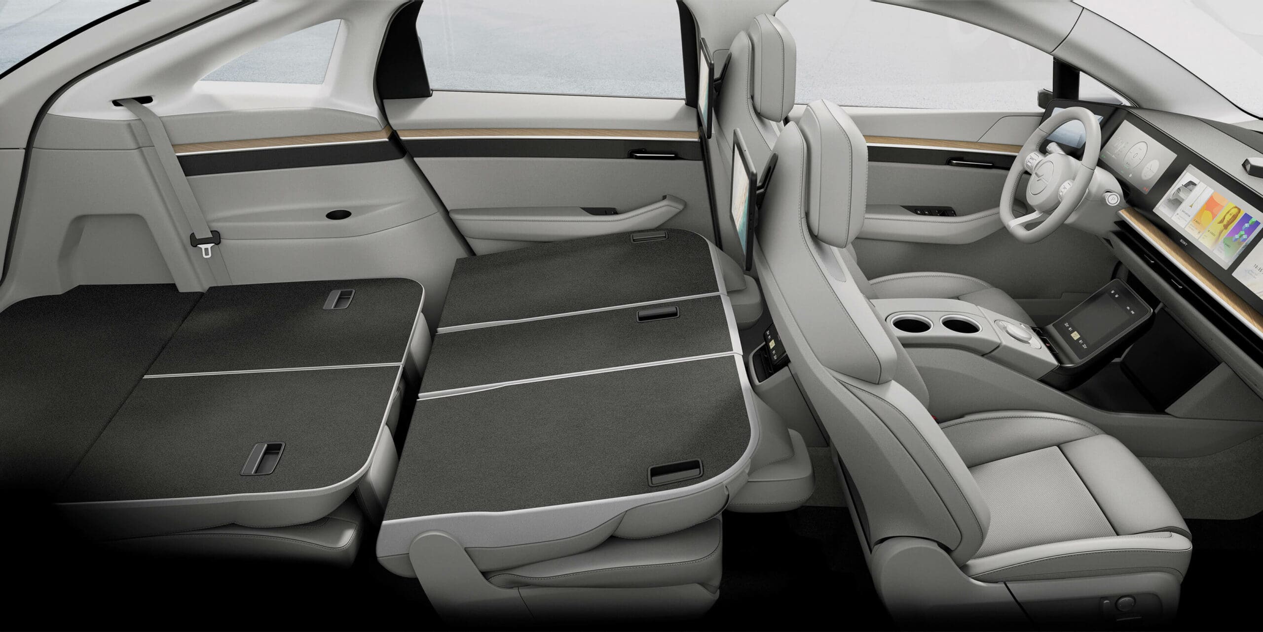 Power comes from dual electric motors providing a total of 536 horsepower channeled to both axles, which is 20 hp more than the iX xDrive50. Much like the BMW, Sony’s concept has adaptive air suspension, pop-out door handles, and 20-inch alloy wheels. The Vision-S 02 takes a different styling approach as it has a more curvaceous shape with a sloping roofline.