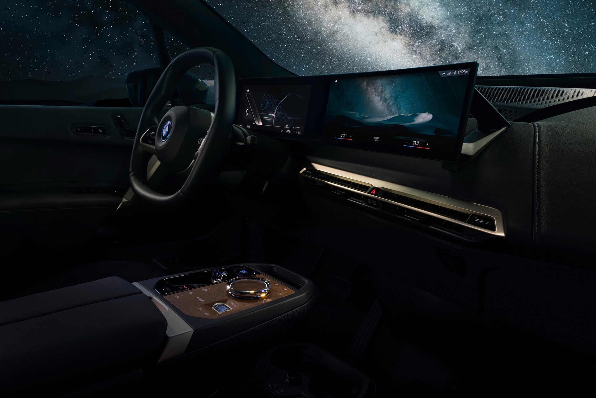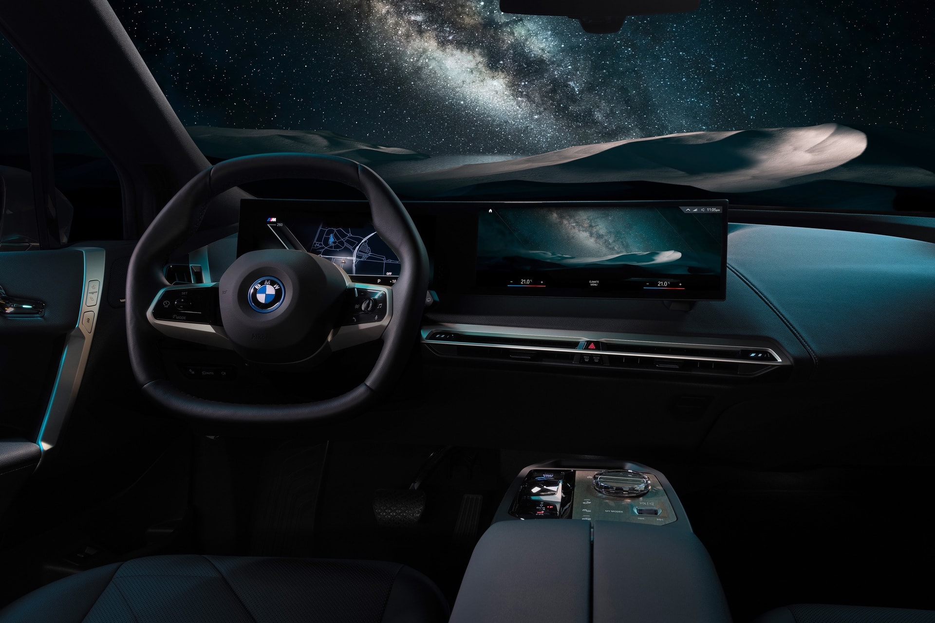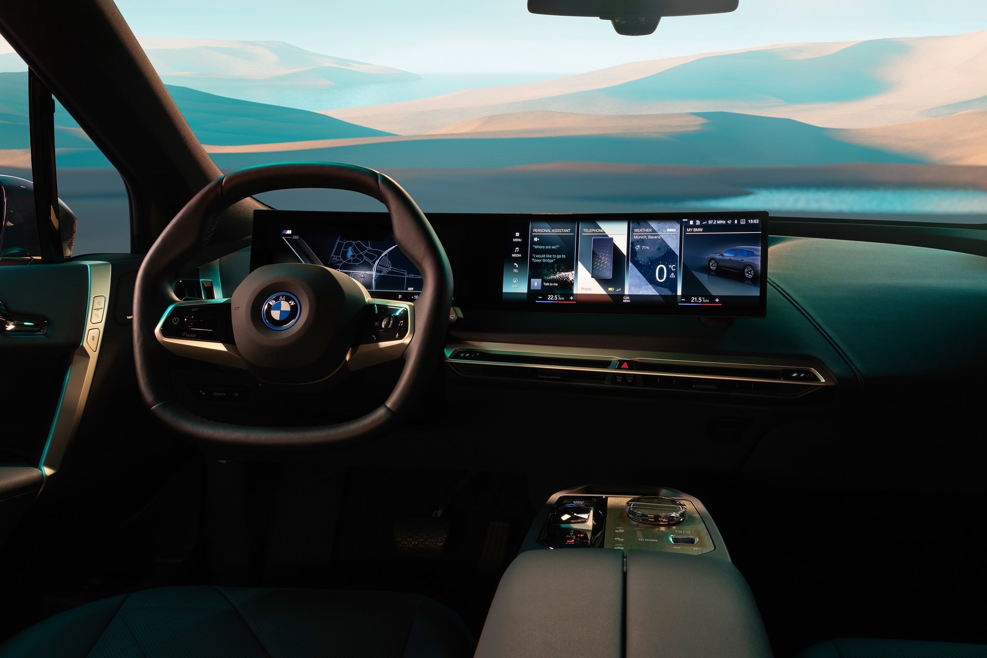 In My Mode Relax, the focus is on wellness, harmony and relaxation. The graphic displays on the BMW Curved Display are inspired by natural landscapes. In all-electric models, an understated and harmonious sound backdrop is generated to match this.