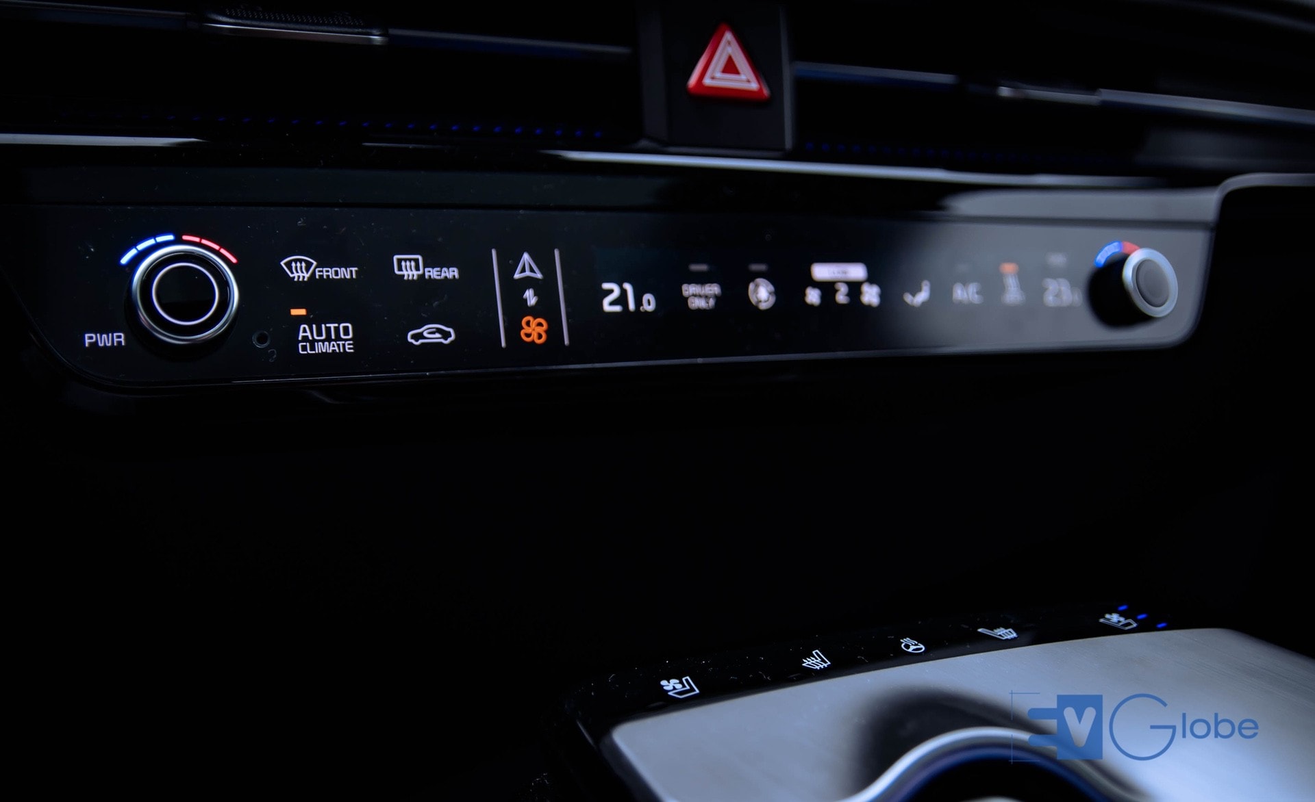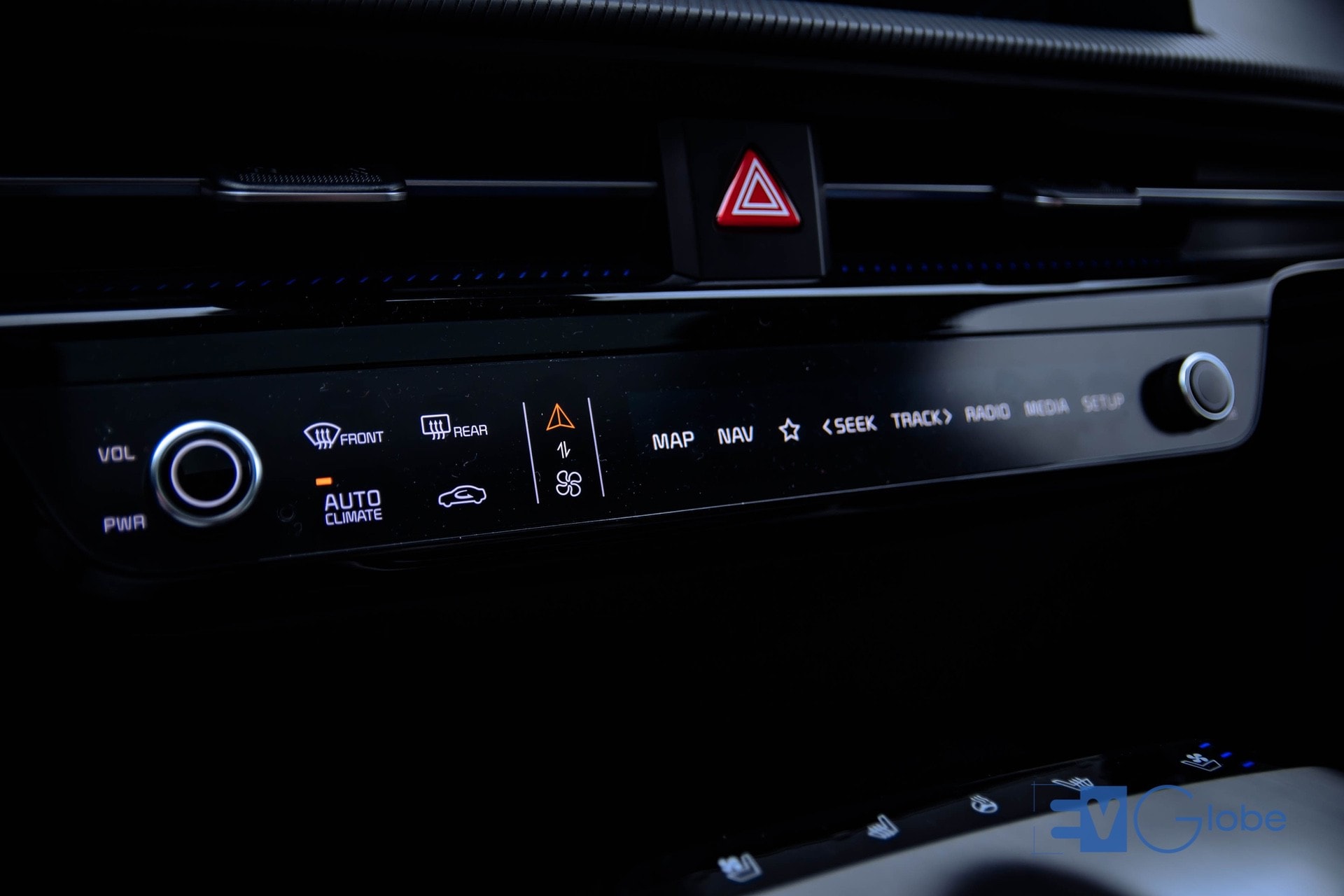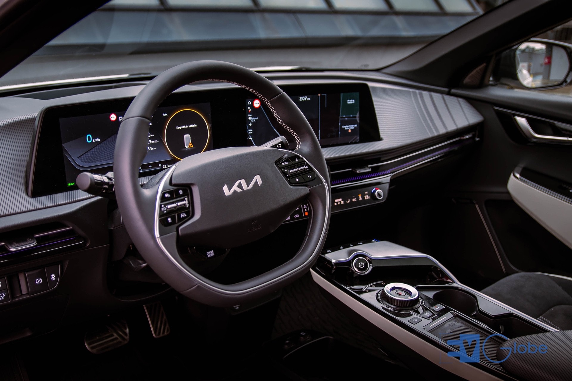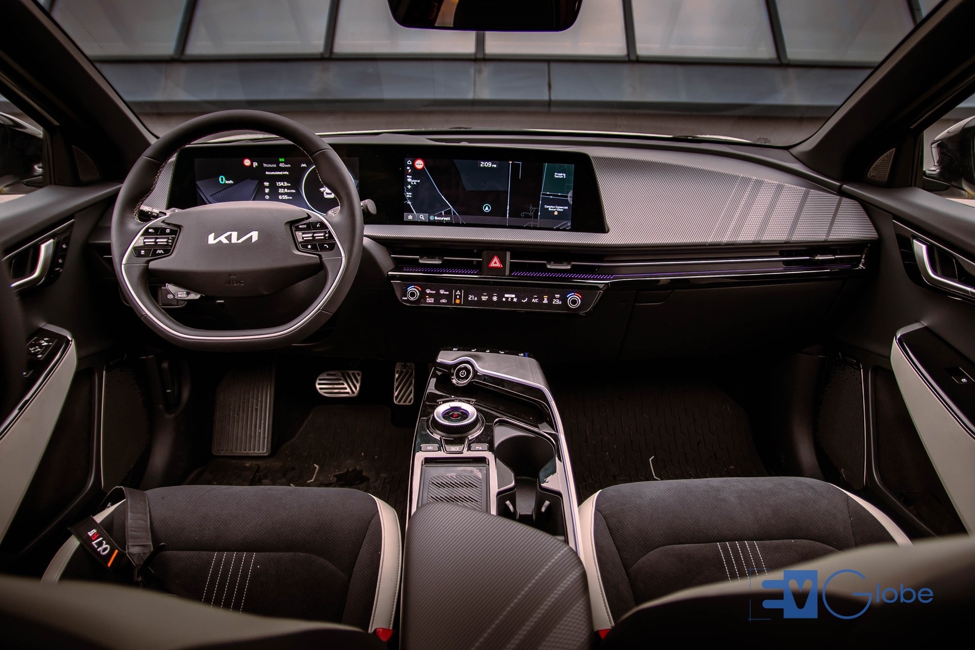 Step inside and you’ll notice that there’s ample room for just about anything, with one exception: headroom. For some reason, the Kia designers decided to somehow flatten the greenhouse of the EV6. Even though it’s just 1.550 millimeters tall, its ground clearance of 160 millimeters somehow squishes the proportions of the car. From the outside you may miss it. Sure, the keen-eyed will notice the small windows, but you really take it in once you step inside.