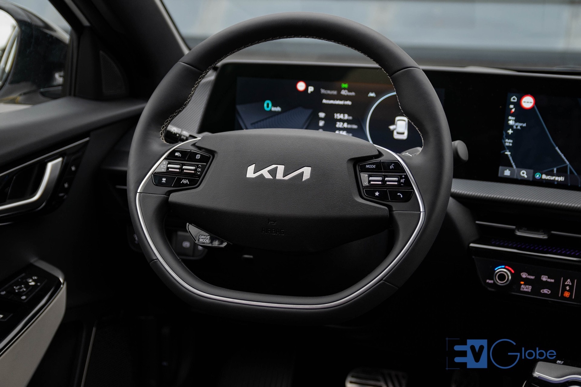 Depending on what you choose, the EV6 can be had in a number of guises. There are two rear-wheel drive versions and two all-wheel drive alternatives, the latter coming with a dual-motor setup, one for each axle. You can also choose from two different battery sizes: 58 kWh and 77 kWh. Our tester was the RWD Long Range version. That means it had one electric motor, on the rear axle, good for 228 HP and 350 Nm of torque, quenching its thirst for electrons from a 77-kWh battery.