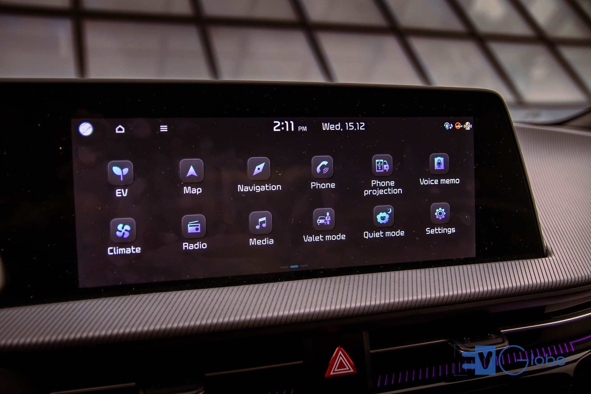 As for the materials used, the perceived quality in this car will vary depending on the way you spec it. Our tester was a GT-Line model with all the bells and whistles. Those included perforated leather and a soft-touch plastic on the dash and center armrest. The door panels also feature soft-touch plastics on the top half and a cheaper alternative towards the bottom. The dashboard is where things become even more interesting. That’s because it is dominated by two 12.3-inch screens that come as standard on all EV6 models. They are, as you might be suspecting, used as an instrument cluster and infotainment system. Both have great graphics, high resolutions and work flawlessly. You get Android Auto and Apple Carplay as standard.
