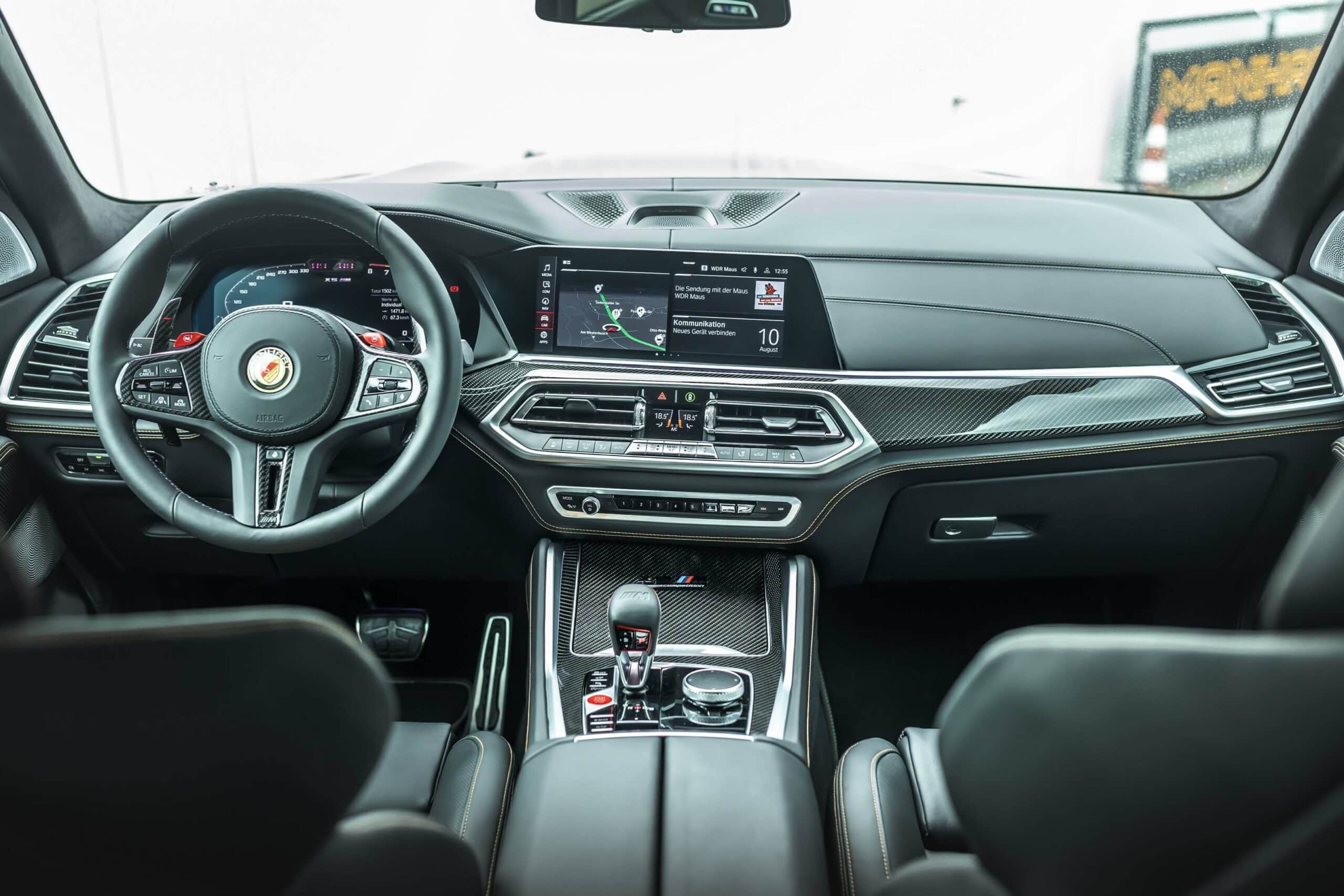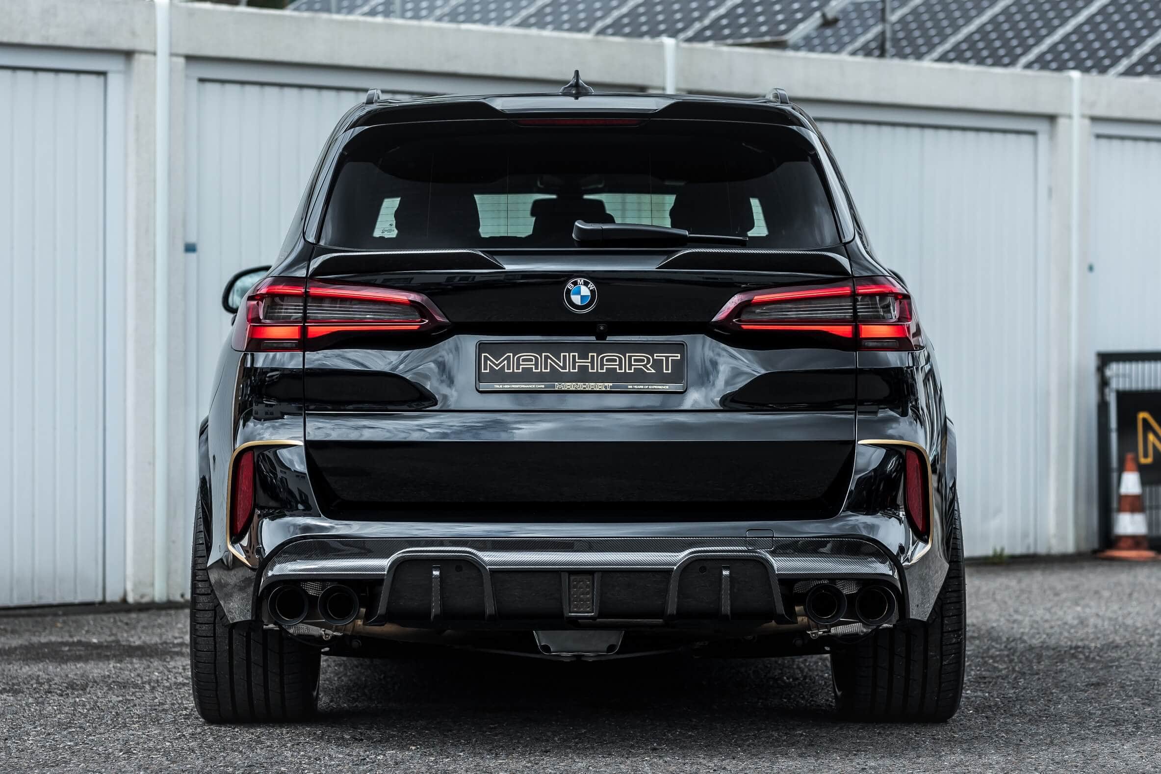 In order to match the added oomph of the uprated V8, Manhart fits the X5 M Competition with a meaner body kit. The carbon fiber add-ons include a front spoiler lip and a rear diffuser with an F1-like center light. Also noticeable are chunky side skirts, hood vents as well as a two-piece spoiler mounted on the tailgate.