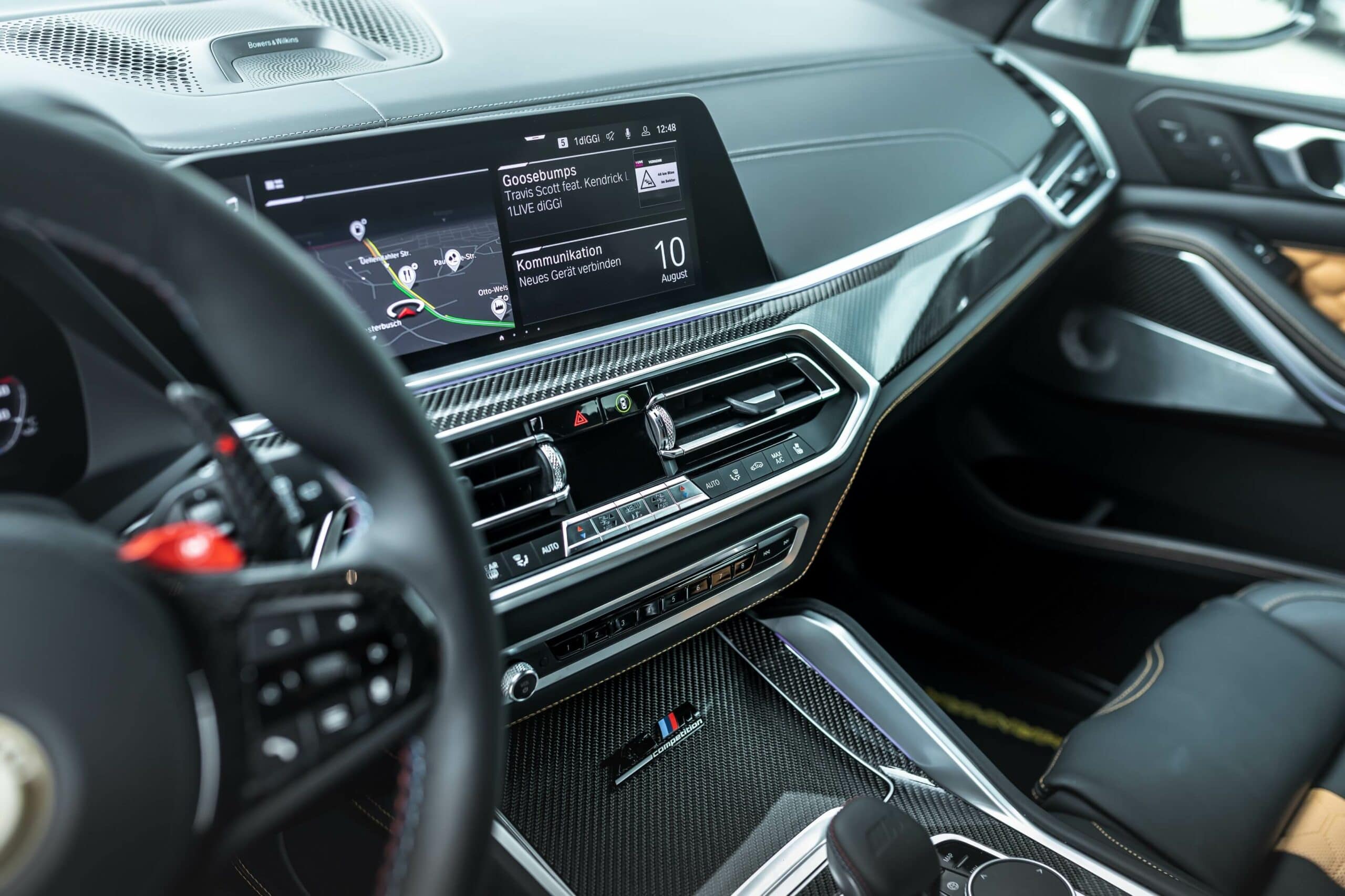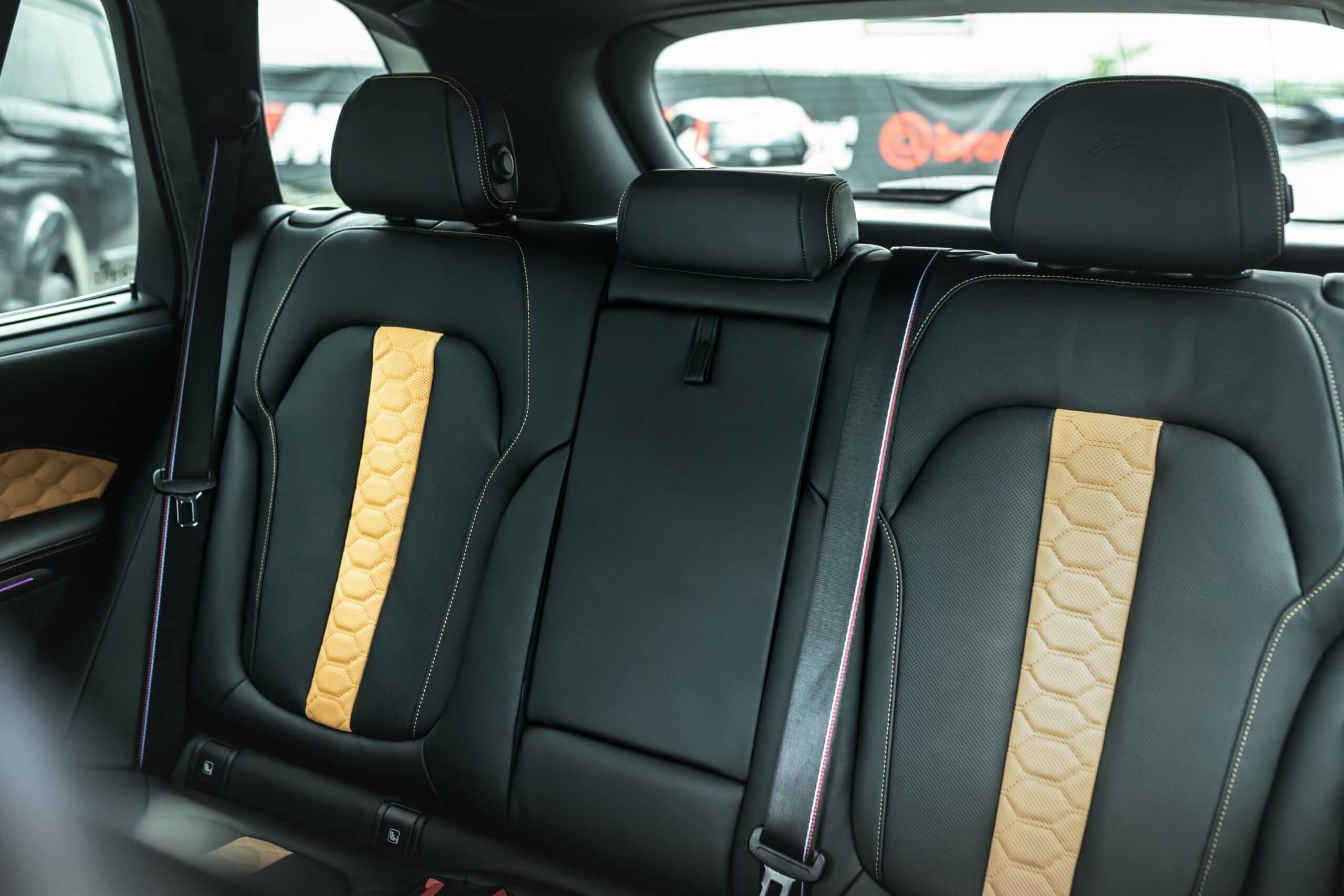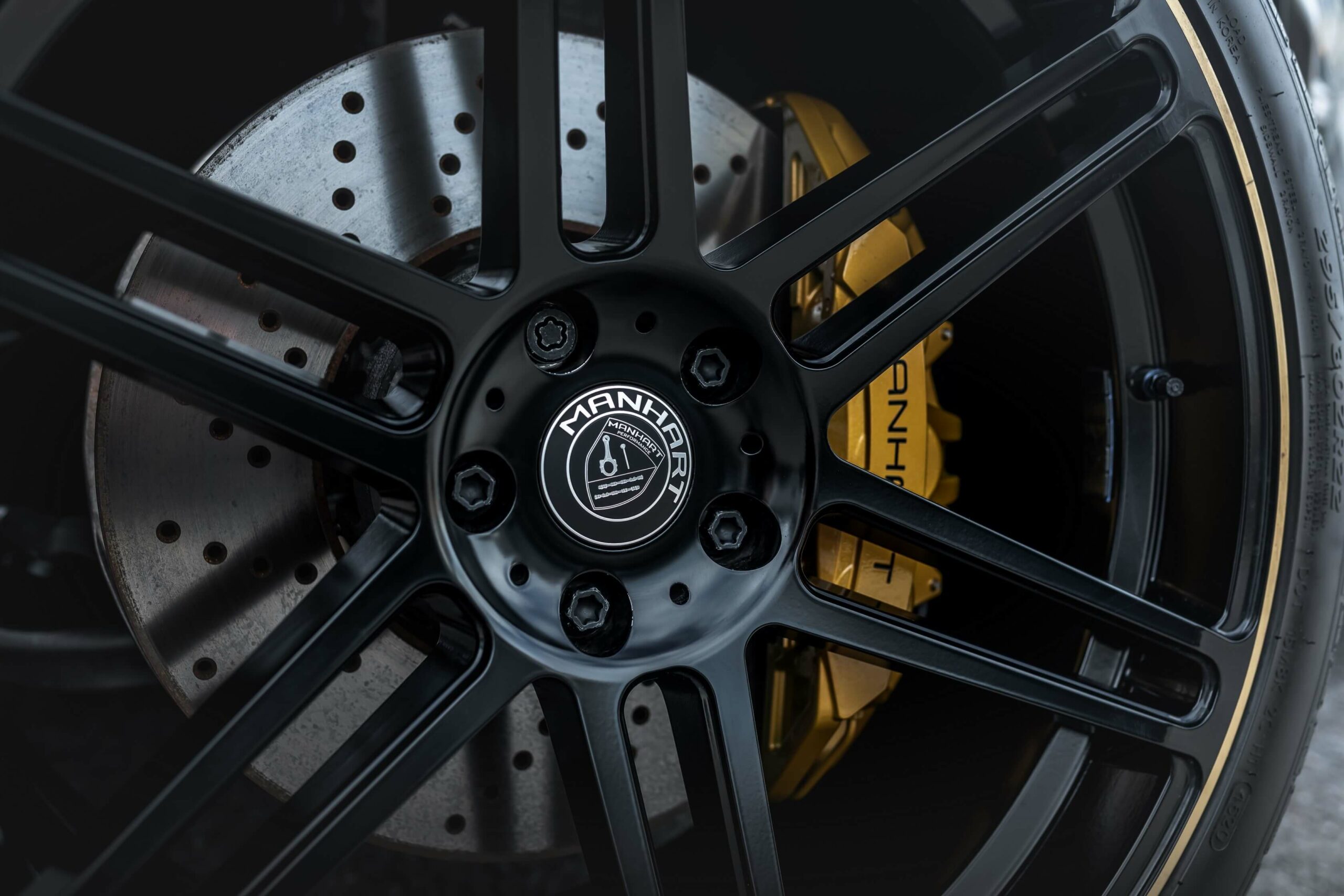 The X5 M Competition featured here by Manhart retains the original brakes, but the German tuner will be happy to upgrade them to a custom set. Also available at an additional cost, H&R suspension springs bring the speedy SUV closer to the road for a more aggressive stance. The OEM wheels have made way for a 22-inch set with a gold rim decoration. Speaking of which, contrasting accents are also noticeable at the front and rear fascias.
