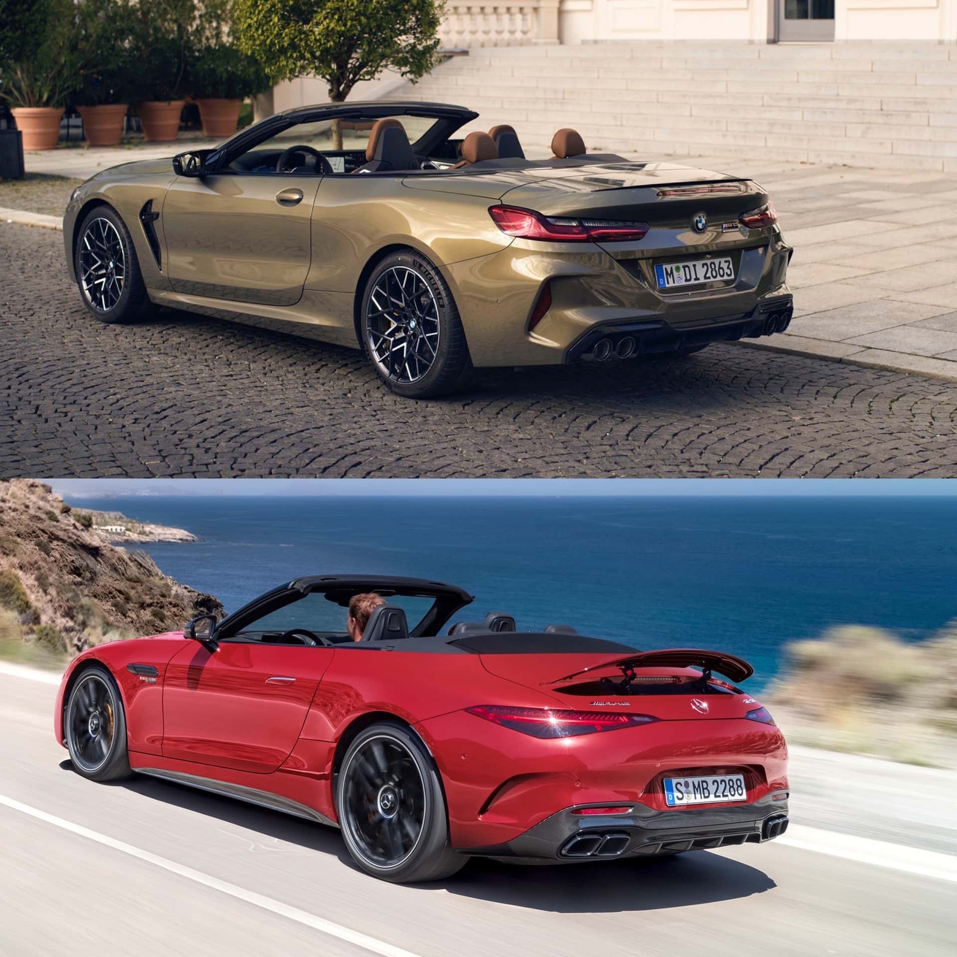 The M8 Convertible is sleek, low, and smooth, while the AMG SL-Class has a bit of a bubble butt, when you look at it in profile. It’s still gorgeous, don’t get me wrong, but I actually like the BMW M8 Convertible a bit more from the side. It’s a small victory for the Bimmer but that’s a big deal for a car that’s quite a bit older than the AMG.