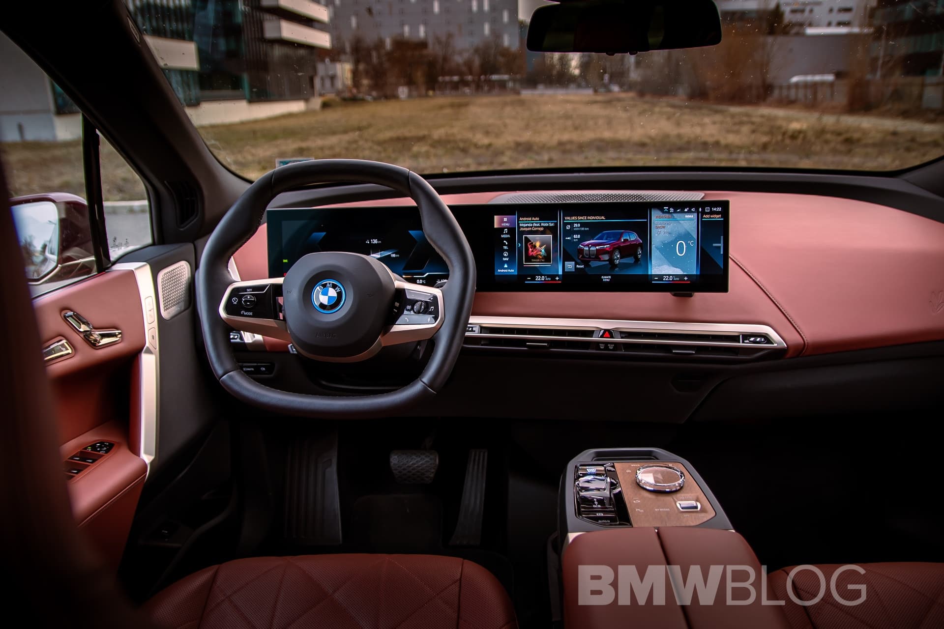 Just from the looks of things, you can’t tell which BMW iX is which. No matter the battery size, nor power output, the iX’s true nature remains a secret to prying eyes unless you look for the badge on the read. My tester was wearing Adventurine Red Metallic III, a color that’s absolutely stunning on any car. That hue was complimented by Titanium Bronze accents here and there, too. For example, the door handles were bronzed, as were the window surrounds, but the kidney grille had a background with a bronzeish hue.