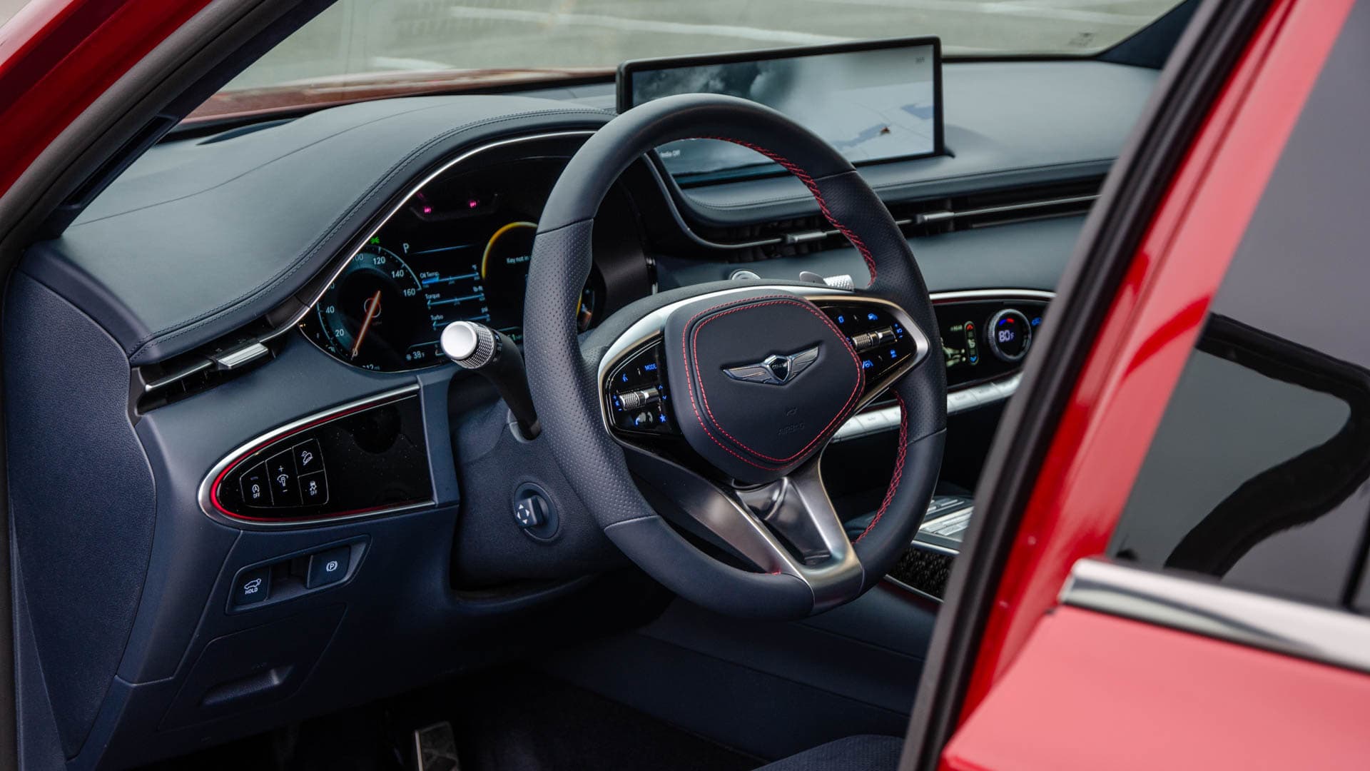 Quality is good, too. Though, I’d be lying if I said it was up to par with BMW’s cabin quality. It’s mostly really nice in the GV70, with soft leather, high-quality plastics, solid feeling build quality, and sharp tech. However, some fit and finish issues do set it apart from modern BMWs. For instance, the center console compartment lid was a touch wobbly on my test car, some of the switchgear plastic isn’t the absolute best, and you can find some scratchy plastics if you search down low on the door panels. That said, none of it is concerning and I loved spending every minute in the GV70’s interior.