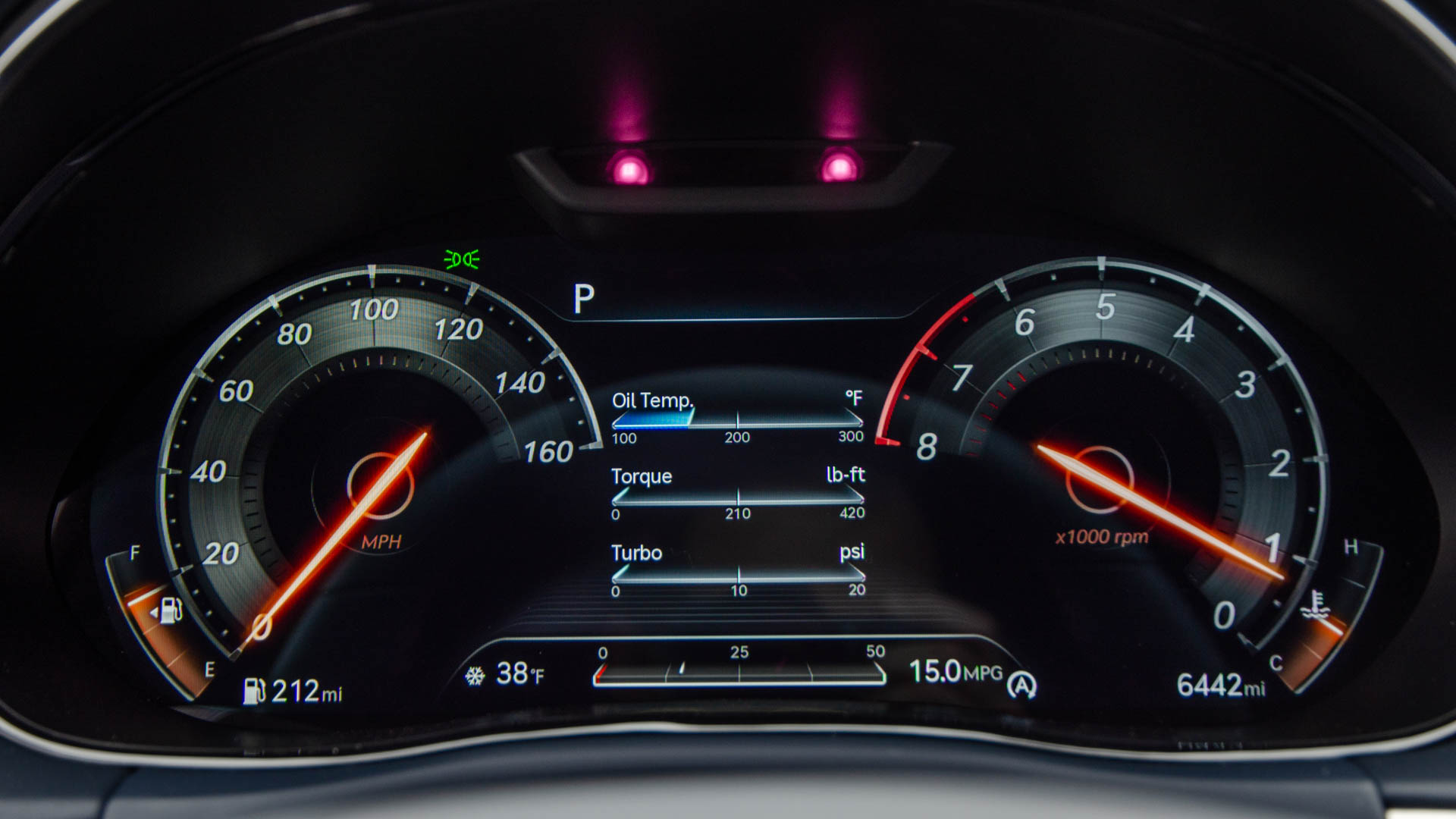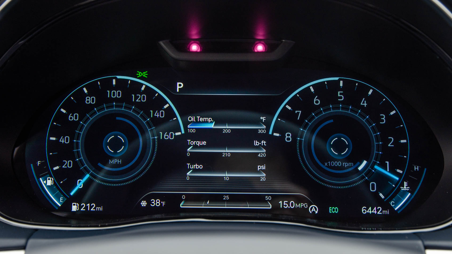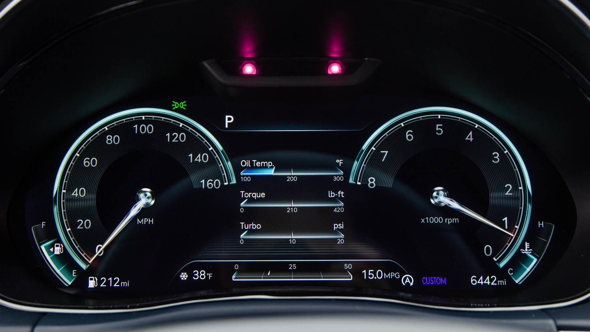 A special note needs to be made for its gauges, though. They change wildly based on drive settings and even have a killer 3D effect that is odd at first but so flipping cool. My only beef with the gauges is that you can’t choose the sport gauge for your custom drive profile. So if you want to use your personalized drive settings for your engine, steering, and suspension, you’re stuck with the standard gauge screen. Still, it looks awesome.