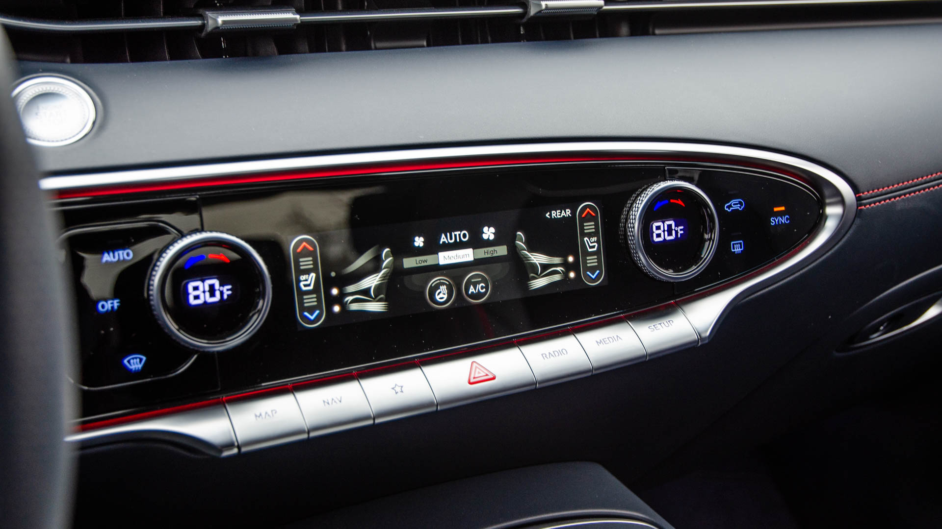 Genesis is crushing the interior design game, lately, and the the GV70 is no different. The GV70 Sport Prestige comes with a gorgeous cabin that features a modern, unique design that helps it stand out from its staid German competitors. Rich leather covers most surfaces, a massive touchscreen features crisp graphics and a rapid response, sport seats both hug and coddle their passengers, and the gauges are spectacular.