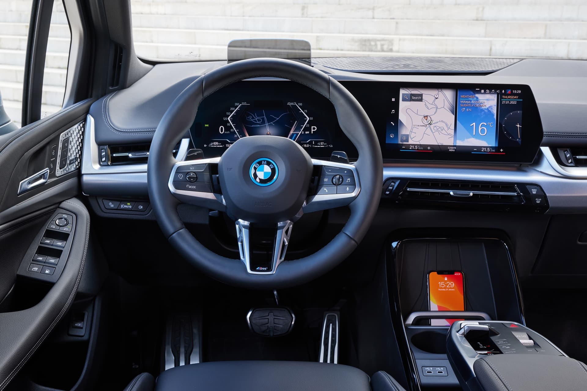 To sample the first-ever BMW 23oe Active Tourer PHEV, we went for a spirited drive around Malaga, Spain. A lead car takes us through city center first where we get to experience the all-electric drivetrain and its regenerative braking. The intelligent system can automatically detect a car in front and will adjust the amount of braking accordingly. But if you put the car into Sport Mode, then the one-pedal feel takes over.