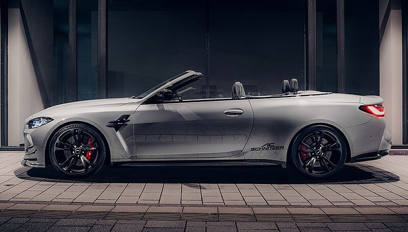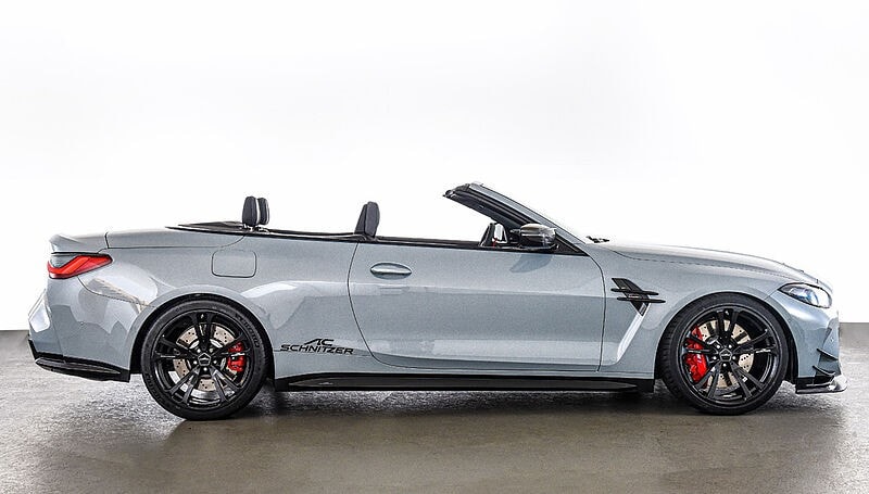 Winter isn’t over in Europe, but that hasn’t stopped AC Schnitzer from taking the BMW M4 Convertible for a spin. The reputable German tuner has prepared several goodies for the G83 in the more potent Competition specification. The aerodynamic kit is more than just for show as it serves a functional role. The front splitter increases downforce by 40 kilograms while the G82 coupe can get a large wing adding 70 kg.