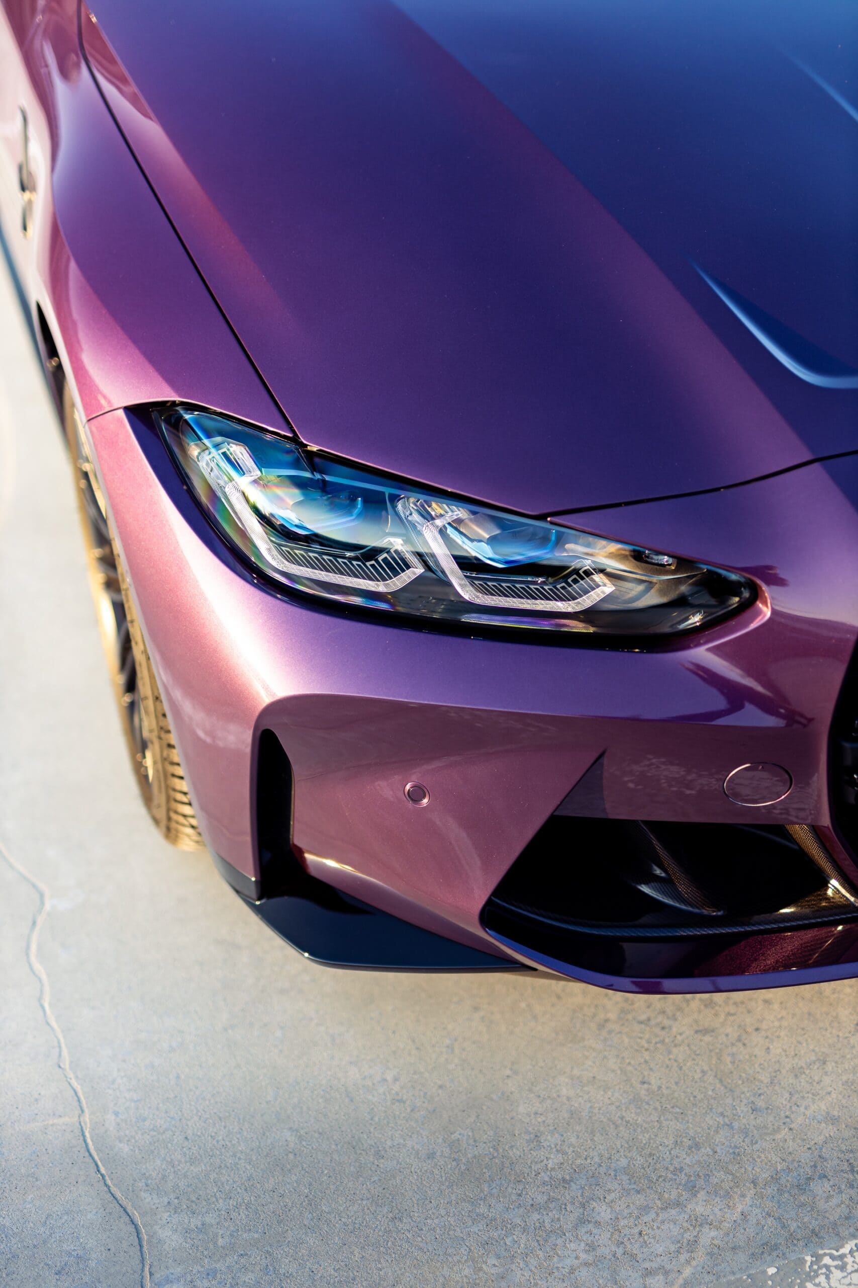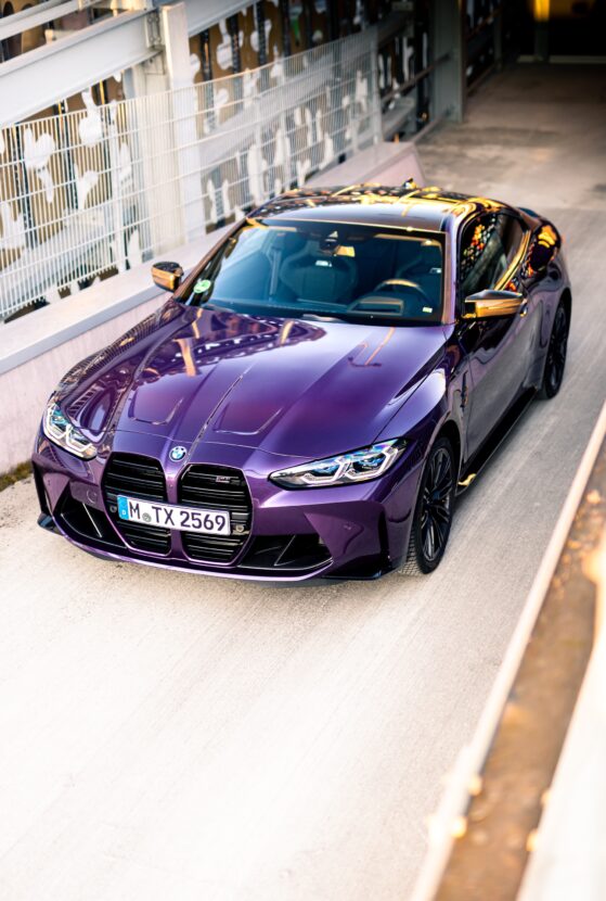 The BMW Individual program for the new M3 and M4 is more exciting than ever, with paintworks like the Frozen White, Frozen Brilliant White, Frozen Black, Frozen Dark Grey, Frozen Orange, Frozen Portimao, Dravit Grey, Oxide Grey, Tanzanite Blue II, and much more. And Purple Silk is arguably one of the best choices.