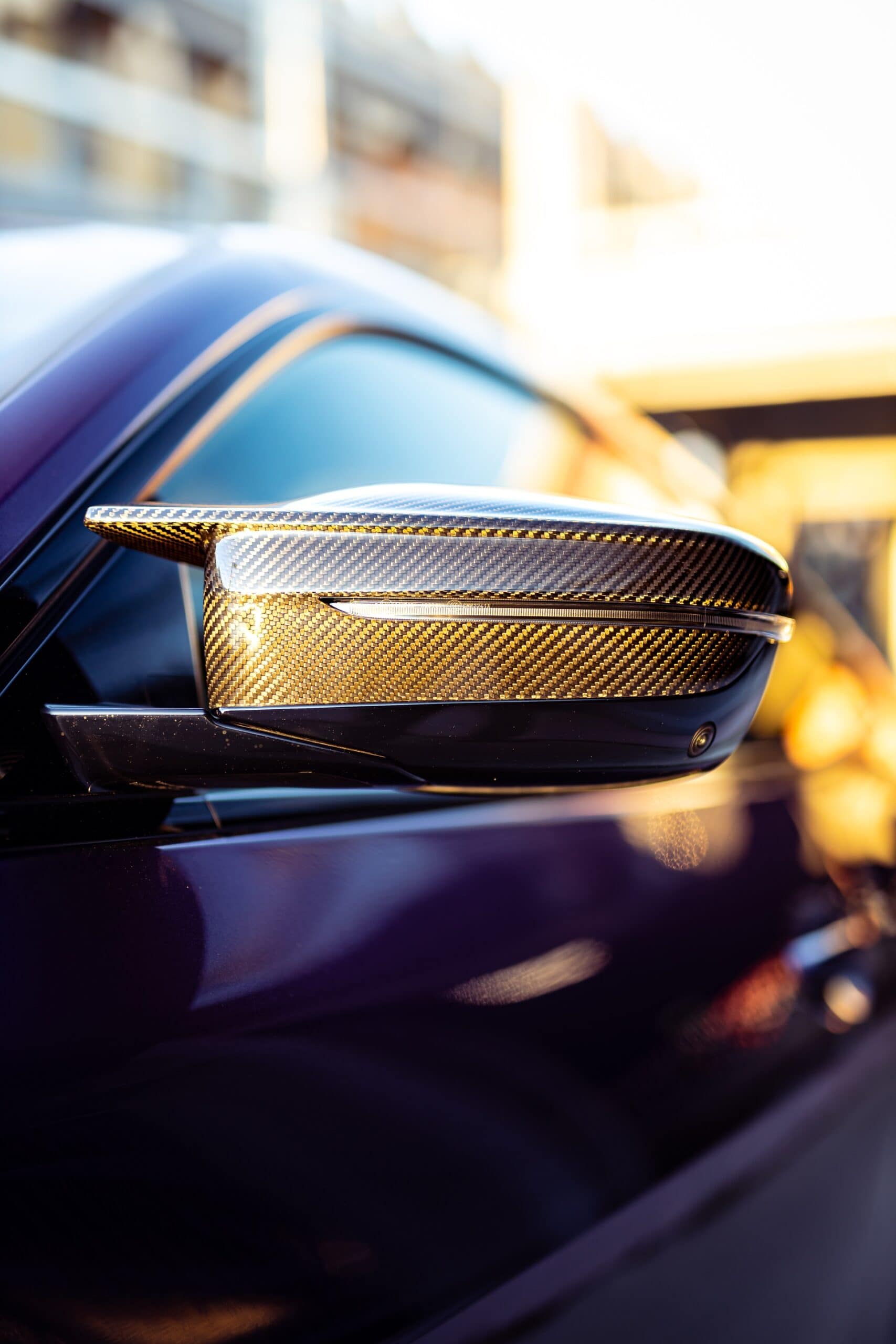 The M Performance Parts project starts at the front with the M Performance carbon front attachment, the M Performance carbon front splitter and the carbon M Performance Aero Flicks. On the side, you can see the M Performance carbon air breathers and M Performance carbon side skirt trims.