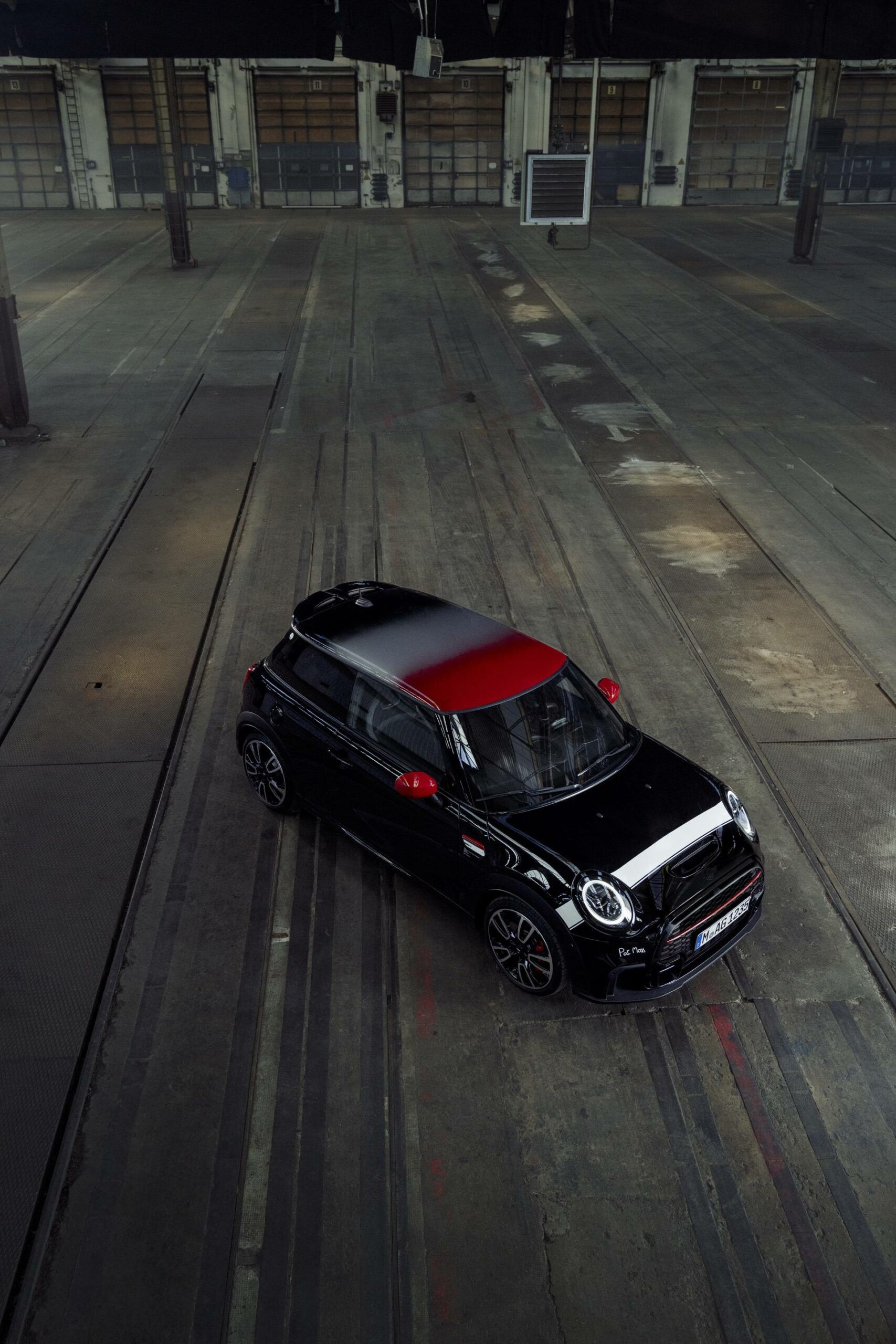 Another design element used for the first time in the Pat Moss Edition is the horizontally aligned bonnet stripe in white. The printed combination of three-dimensional numbers and letters – 737 ABL – is the registration number of the classic Mini that won the 1962 Tulip Rally, likewise, recalling the historical model. Meanwhile the original signature that Pat Moss wrote on the bonnet of her car after one of her victories adorns the front apron of the edition model as a graphic imprint.