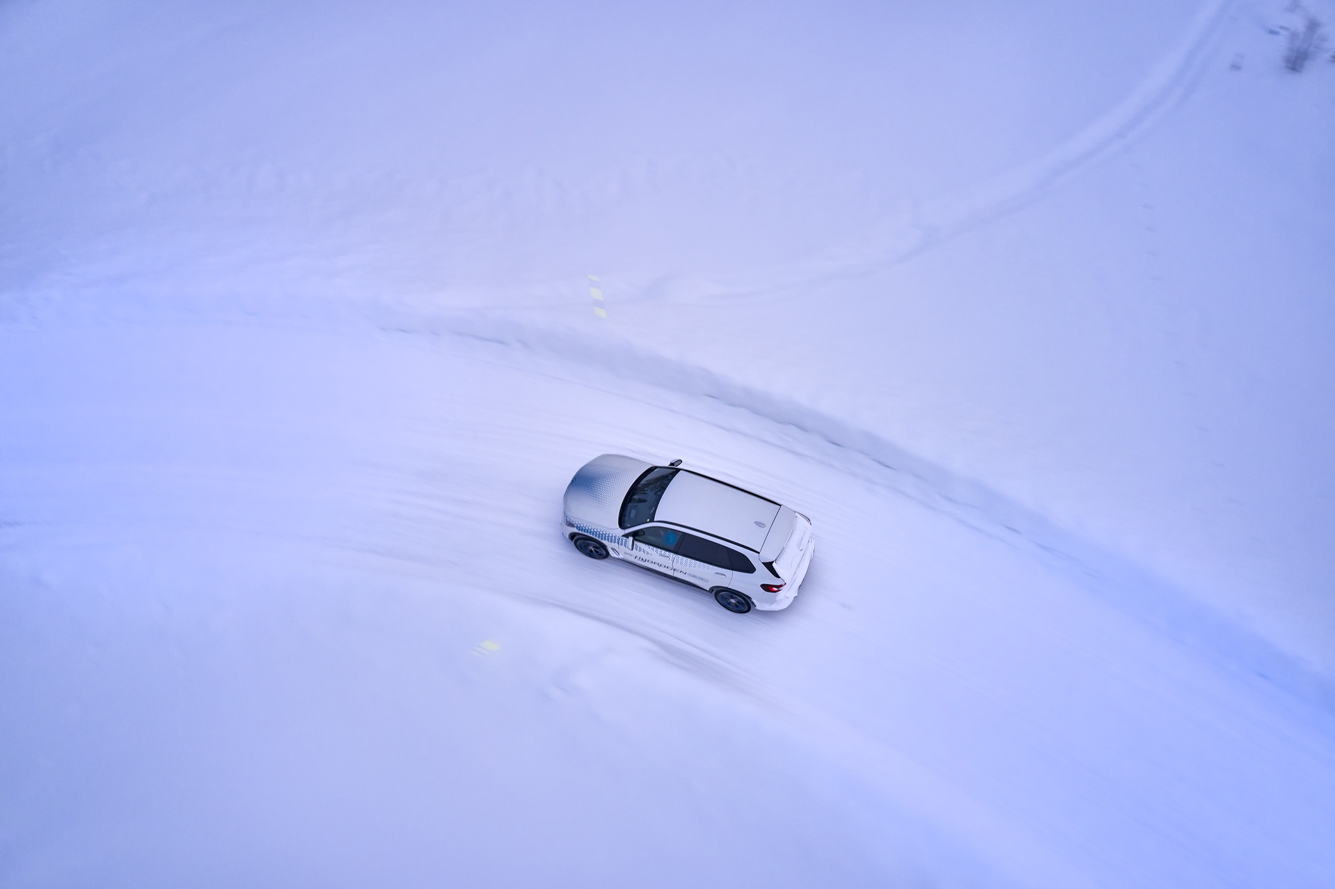 After a short ride, we arrive at the first testing track situated, of course, on an ice lake. The mile long track takes me through snow banks onto some curves where I get to experience the driving dynamics of the iX5 Hydrogen. Being a rear-wheel drive SUV, the iX5 certainly likes to shake its tail, but interestingly enough, the B Mode (one pedal driving) does wonders when you need to offset the slide.