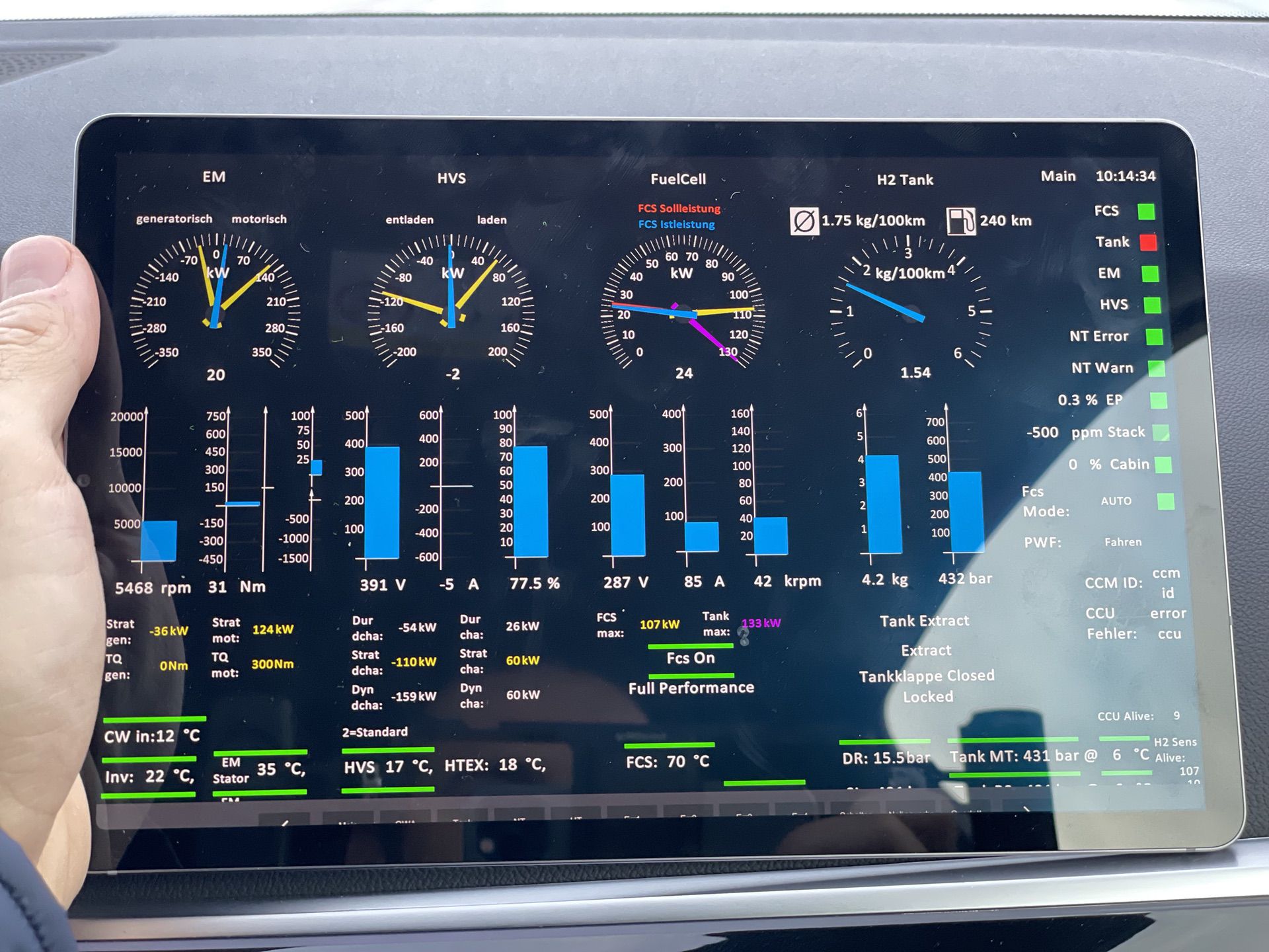 I asked both Dr. Gulder and Halas about the safety measurements required by a hydrogen fuel cell vehicle. According to the engineering team, the hydrogen tank has a liner to prevent the hydrogen from going out, and that’s reinforced with carbon fiber to give it more strength. Additionally, a coating layer provides additional protection so in case of a fire the entire tank is protected. Release valves were also integrated in the car, so in case there is a fire, the hydrogen is released.