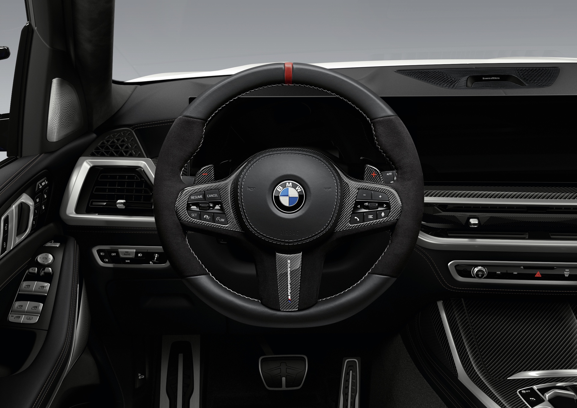 Beyond shiny shoes, the 2023 BMW X7 can be spruced up with several M Performance Parts in carbon fiber. We’re specifically talking about the side mirror caps, fuel filler cap, and gearshift paddles. Elsewhere, there’s loads of leather and Alcantara for the steering wheel and even the key case.