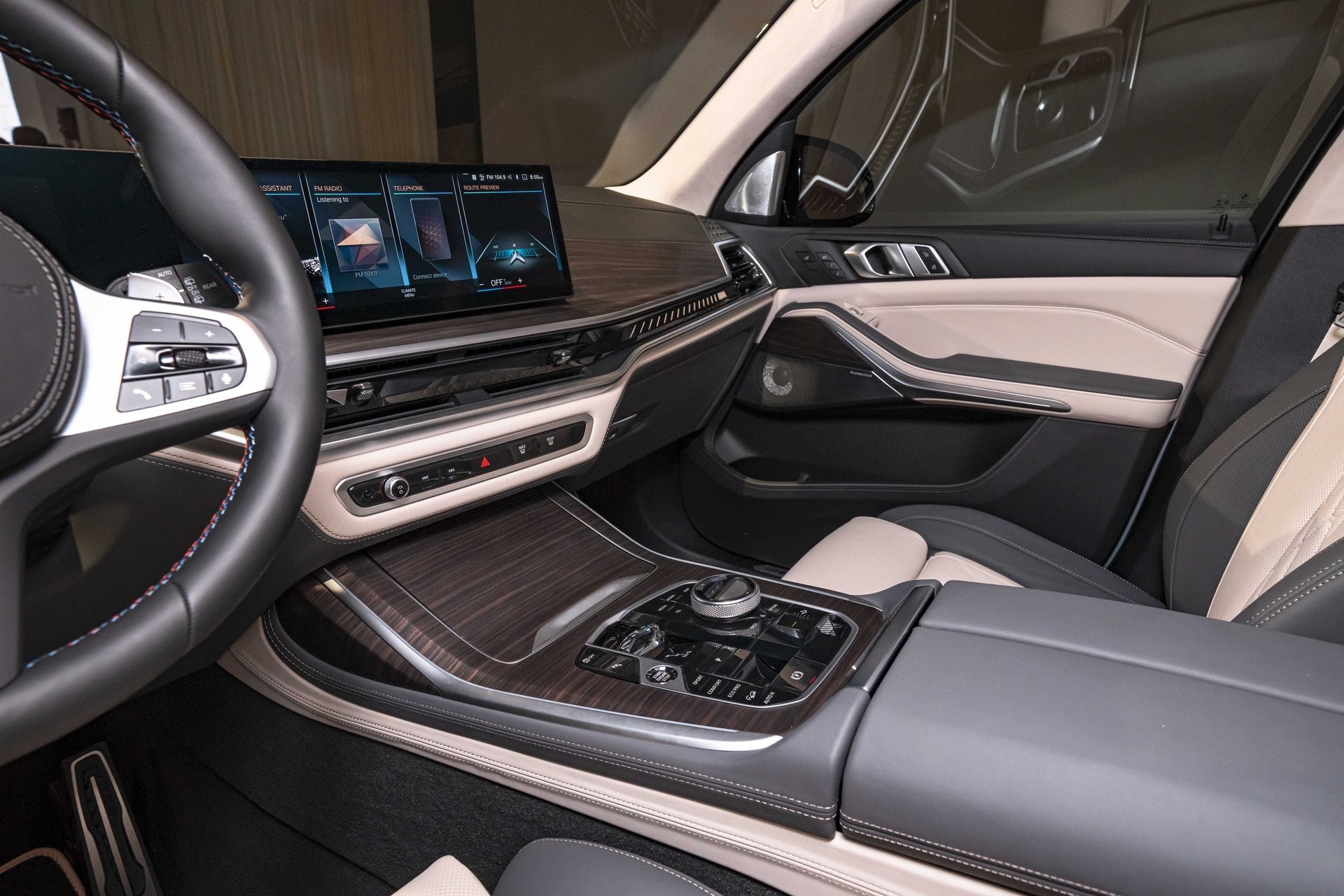 More subtle updates include the light bar on the passenger side of the dashboard, which reads “X7”, and the iX-style shift toggle, which replaces the old shift lever.