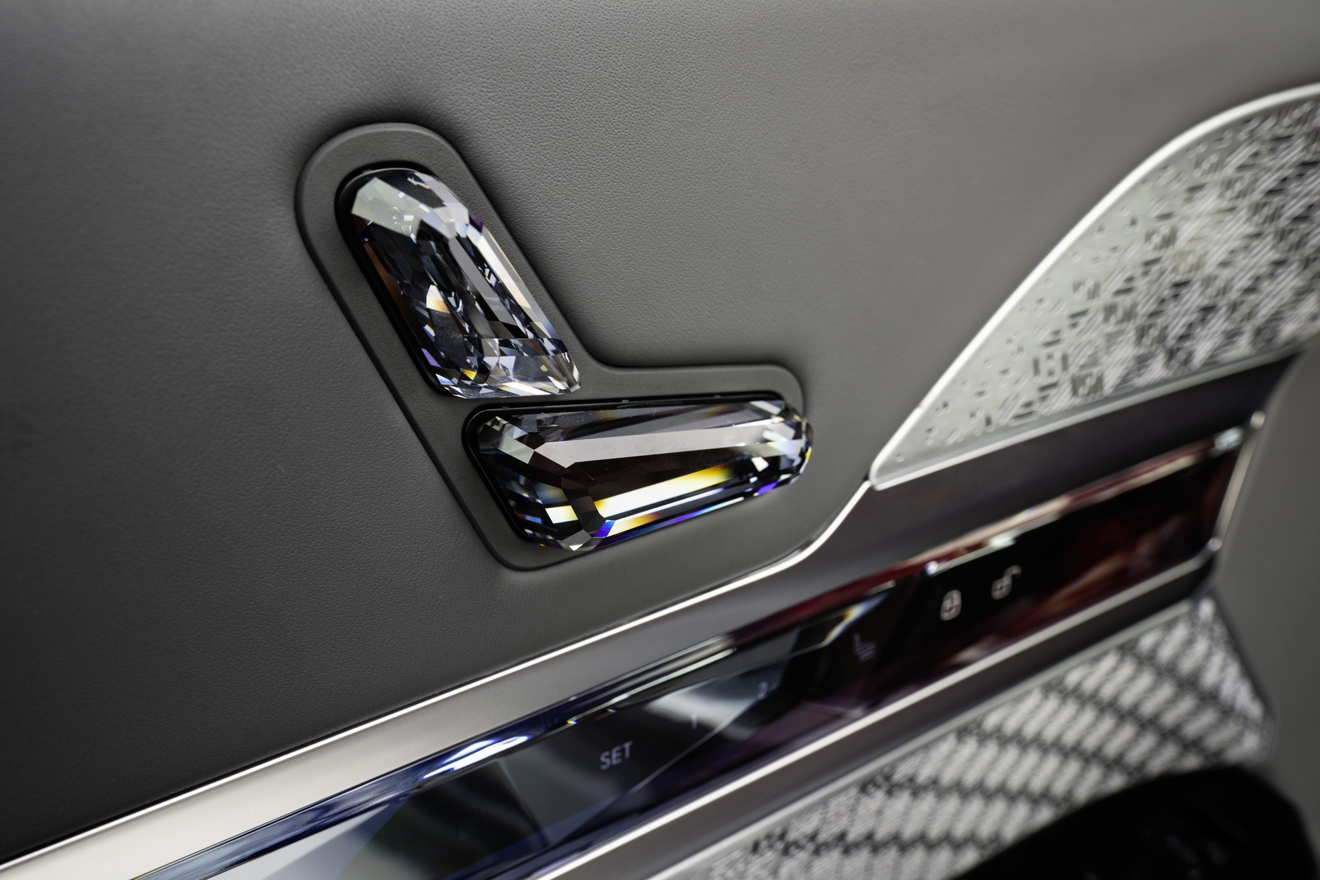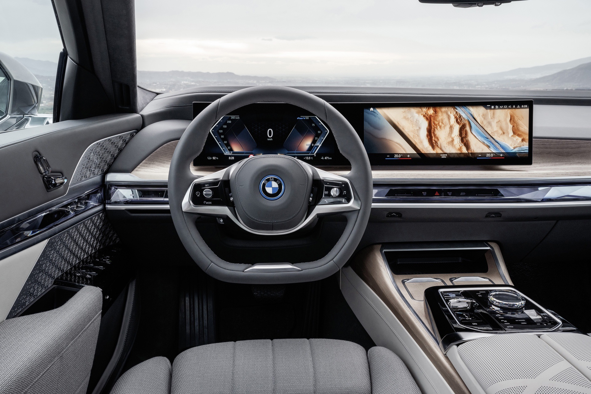 One ace up its sleeve compared to the iX is the BMW Interaction Bar, which takes the shape of a touch-capacitive surface on the passenger side of the dashboard. It provides quick access to various functions, such as ventilation and climate control, opening the glovebox, and turning on the hazard lights. Even the door cards have their own screens, measuring 5.5 inches and with controls for the seats, ambient lighting, sunblinds, and entertainment system.