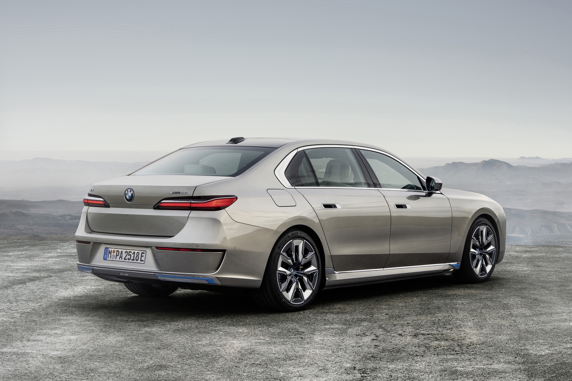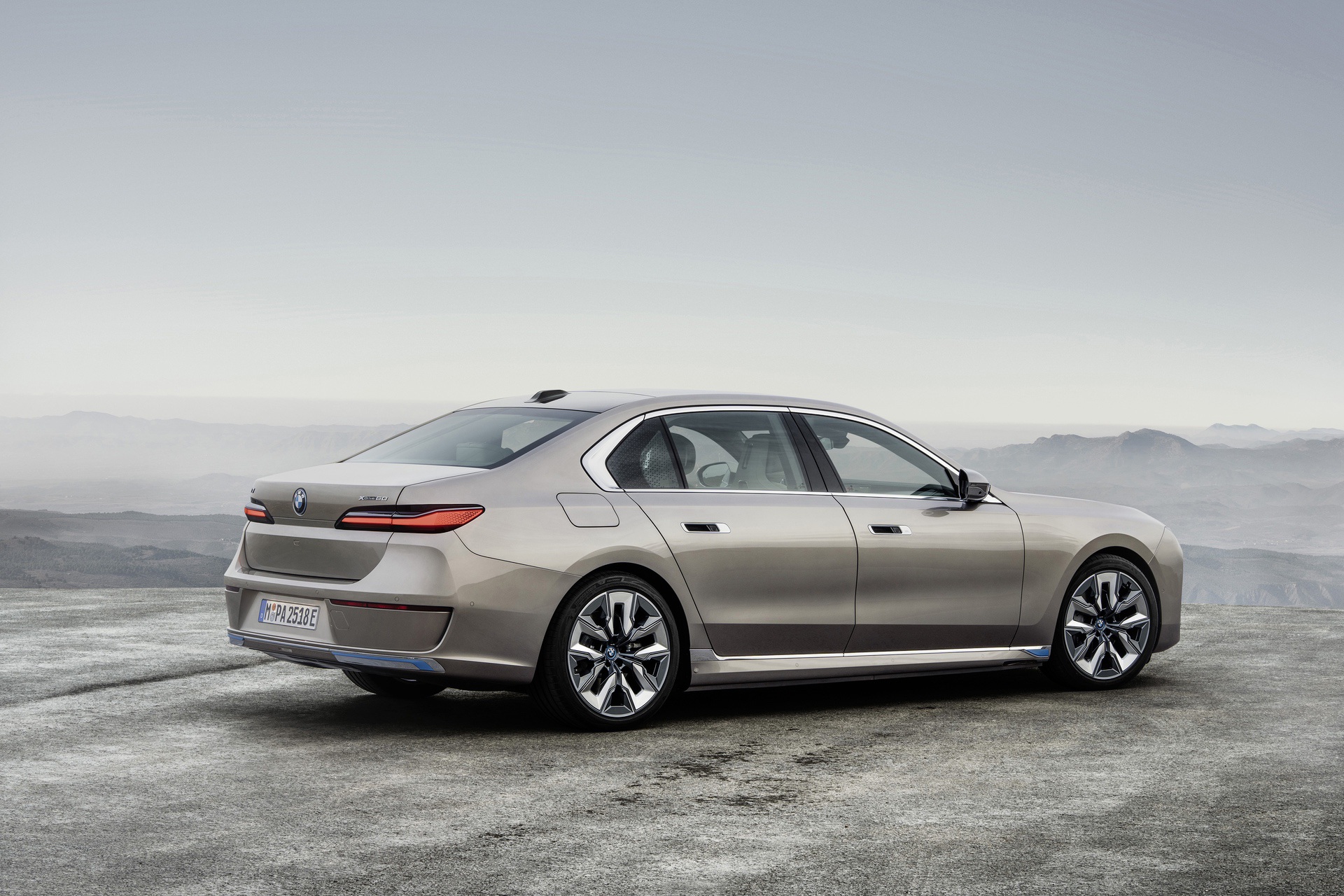 Down the sides of the car, flush door handles, aerodynamic wheels, and honest-to-goodness Hofmeister Kinks flank the BMW i7. It also gets fancy Rolls-Royce-like automatic doors, which open and close at the push of a buttons. Those aerodynamic wheels are big, too, sitting at 19″ as-standard, with 20″ and 21″ wheel options, including M Performance wheels.