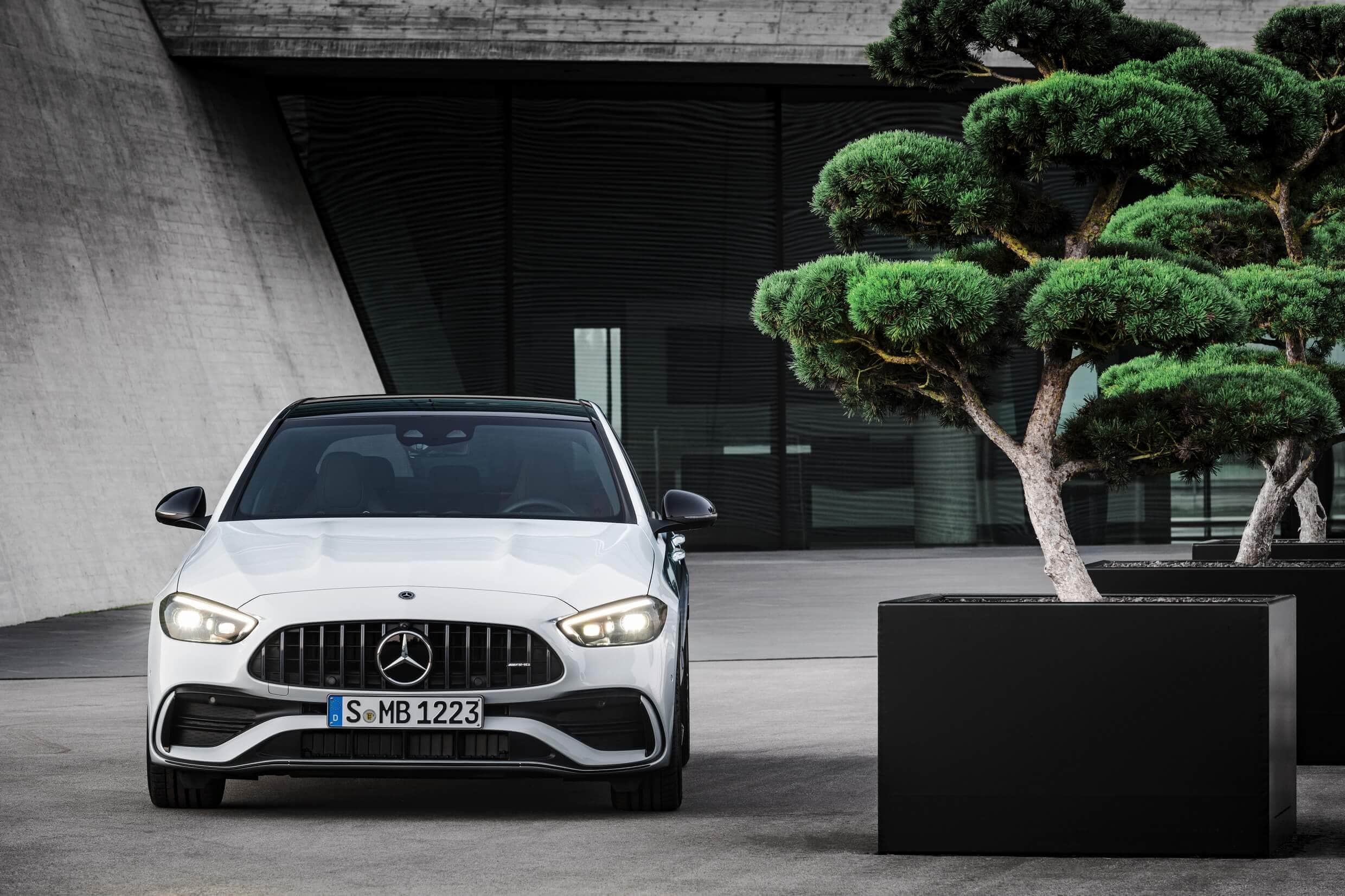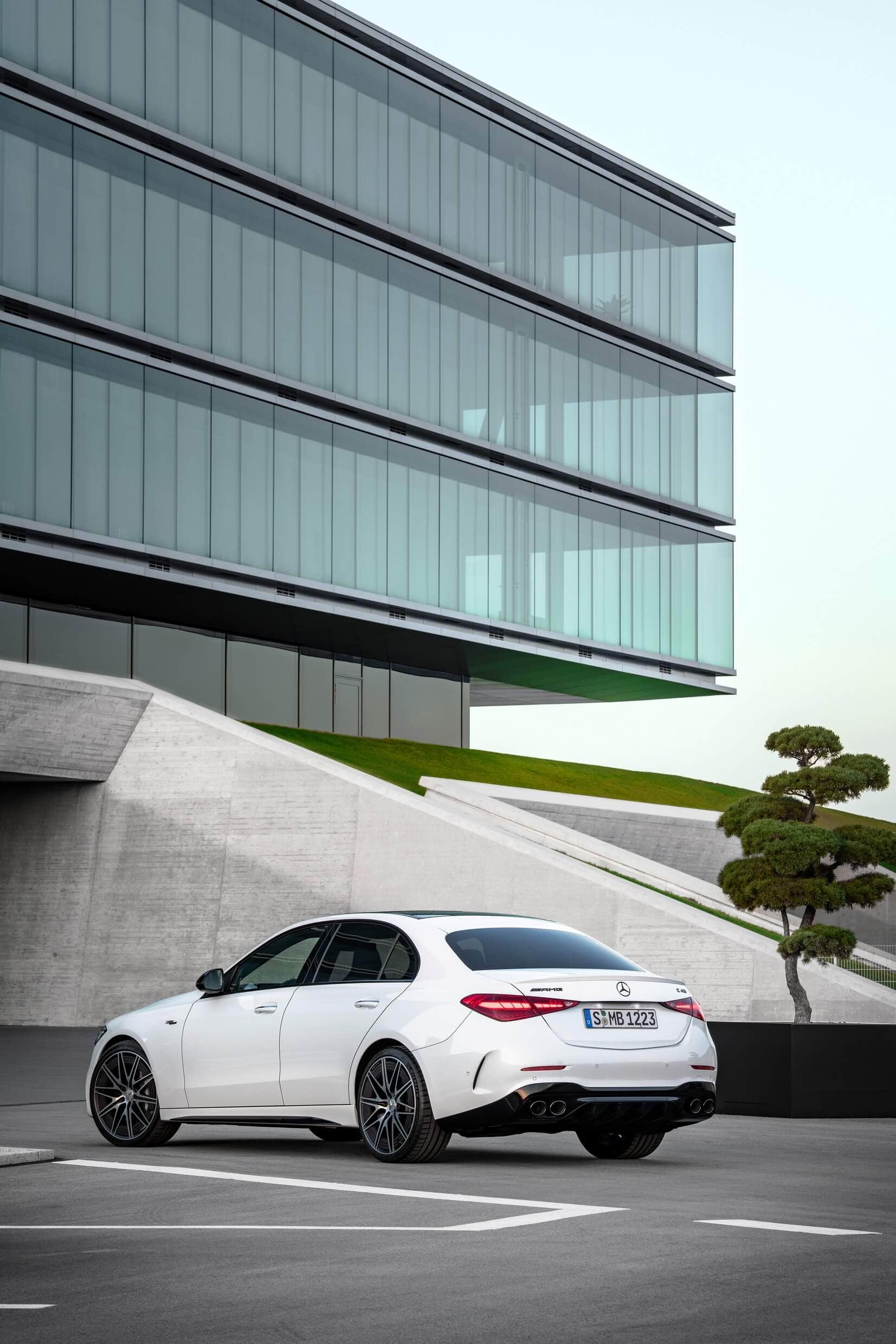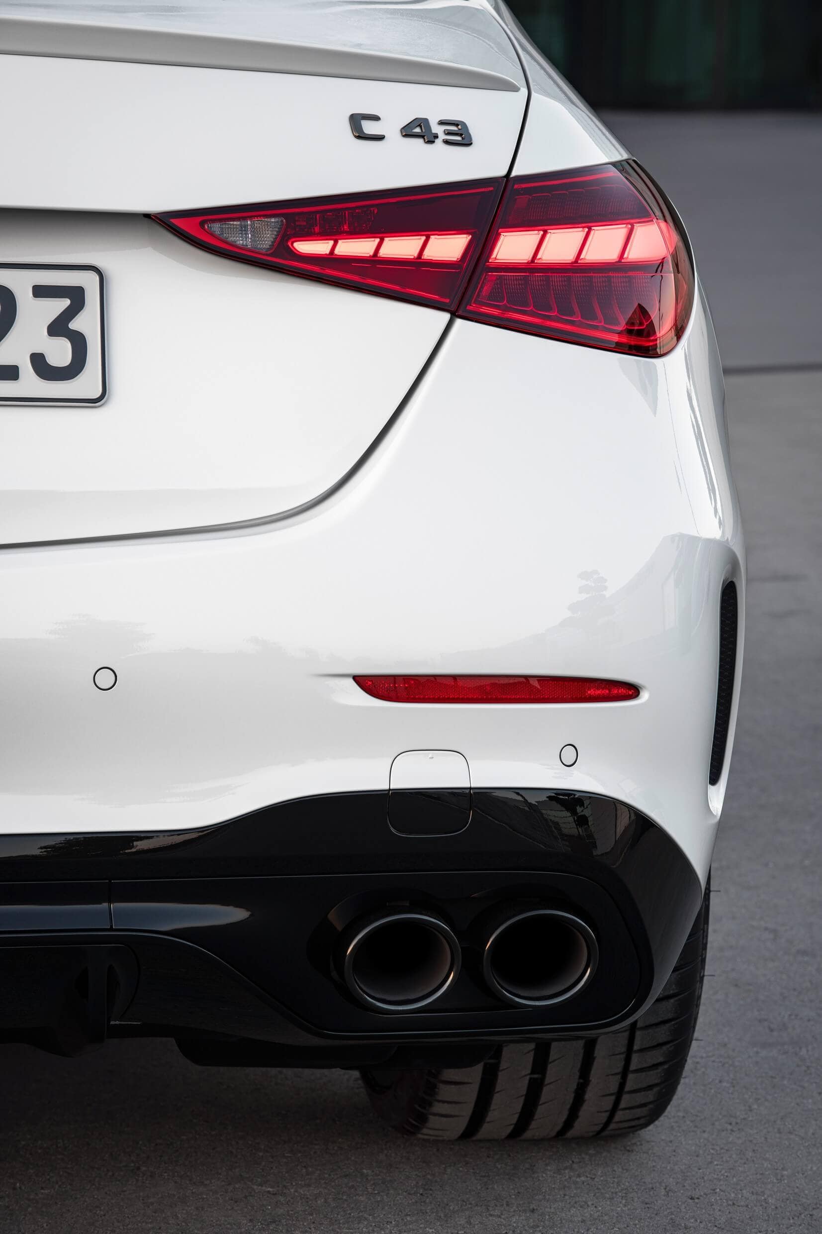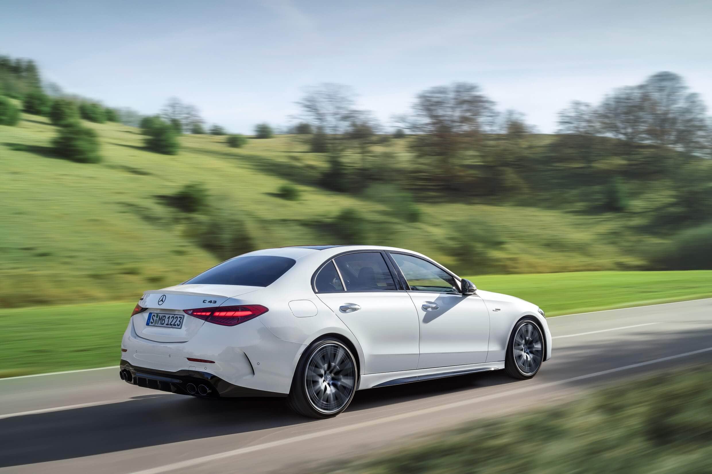 AMG mentions the full horsepower is available from 6,750 rpm while the torque kicks in at 5,000 rpm. The four-pot engine comes with a mild-hybrid system offering an extra 13 hp for a short amount of time courtesy of the belt-driven starter generator. This sophisticated powertrain enables the 2023 C43 to hit 60 mph in around 4.6 seconds before hitting an electronically capped 155 mph (250 km/h). Upgrading to the 19- or 20-inch wheels allows owners to raise the limiter to 165 mph (265 km/h).