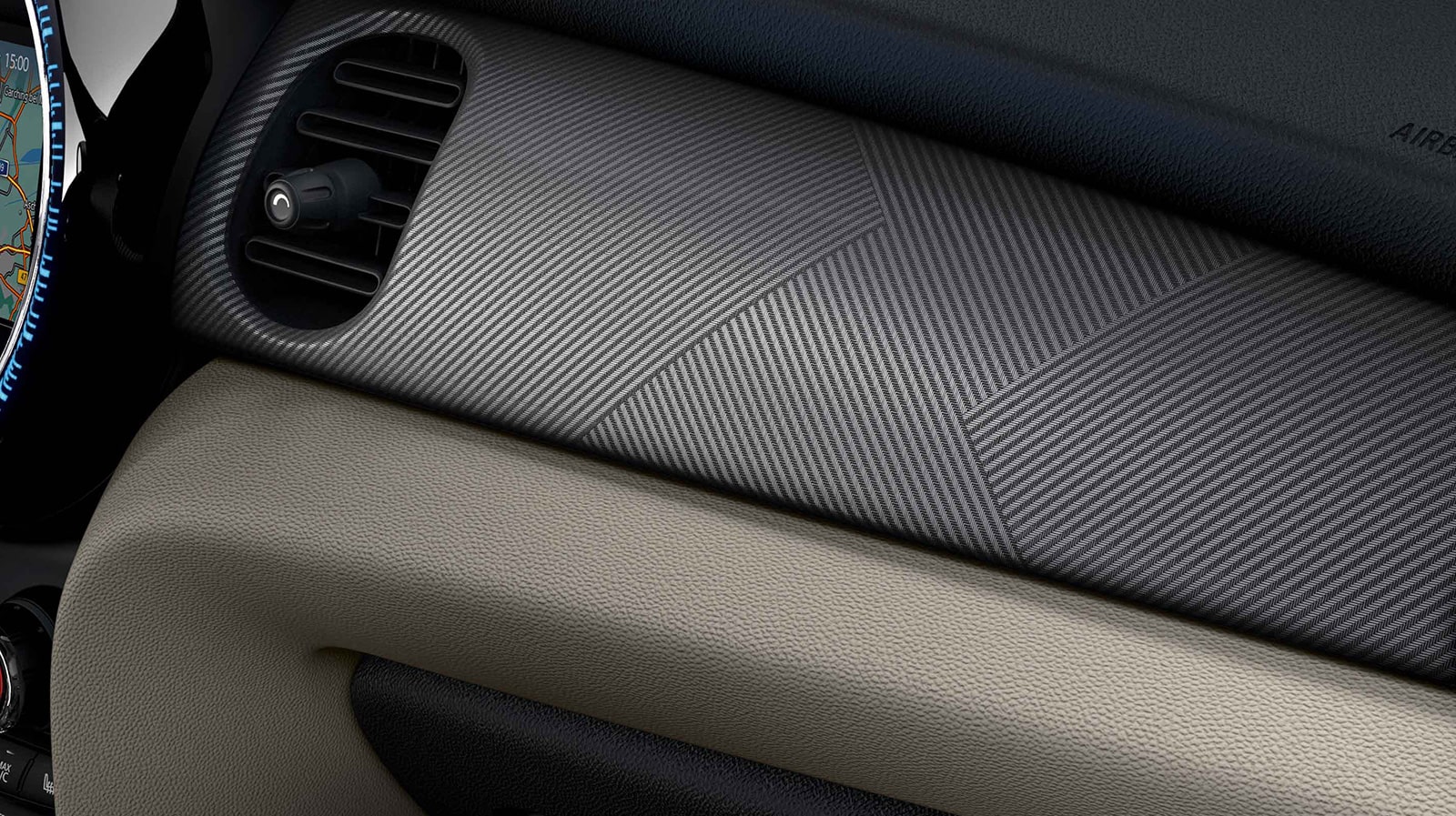 The multi-tone roof we saw last year is the focal point of the limited-run version as it combines three colors featuring a gradient effect. Decals on the hood and side profile are color-coordinated with the main paint finish. Speaking of which, MINI South Korea allows you to pick from either Rooftop Grey or Island Blue. The visual upgrades continue with blacked-out side mirrors.