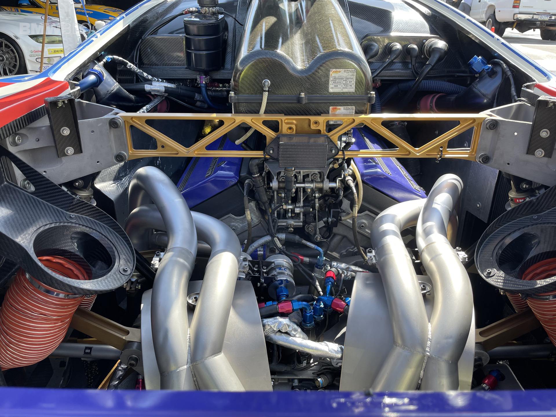 The S70/2 is a magnificent thing to behold. For starters, it’s massive. As s 6.1 liter naturally-aspirated V12, I knew it was a big engine but it’s wild to see it out of the car, next to a human for scale. What an enormous engine it is, made even more imposing by its massive dual carbon fiber air intakes, stunning header design, and gold flake on the exhaust heat shields. I actually can’t imagine cleaning one, I’d be a nervous wreck, hoping not to damage all of the incredibly rare and expensive parts.