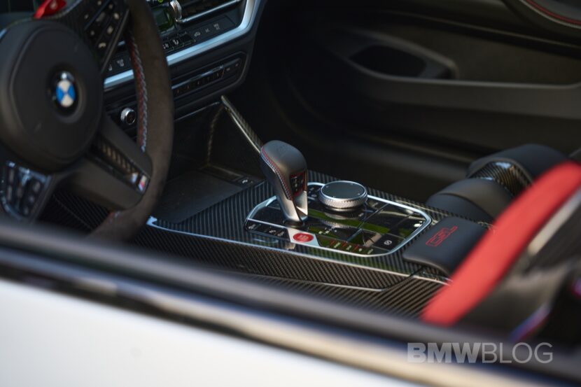 BMW dropped another 15 kg by ditching much of the M4 CSL’s soundproofing and switching some of it over to a lighter-weight version. Carbon fiber exterior bits reduced weight by 11 kg, with another four kg being lost by switching to titanium exhaust silencers. Lastly, another four kg was saved by using lighter weight bits throughout the car, such as the carbon fiber hood, different kidney grilles, rear lights, floor mats, and automatic climate control. For those of you keeping score, that’s a smooth 100 kg weight reduction, dropping the M4 CSL’s curbweight to 1,625 kg.