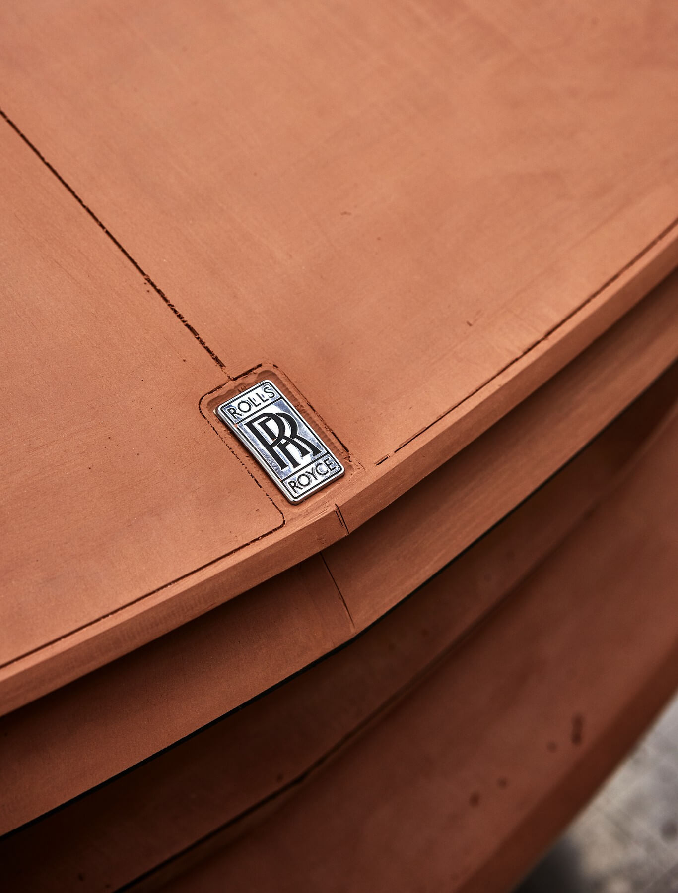 Rolls-Royce painted the imposingly long hood in cognac with bronze and gold-colored aluminum mica flakes to add a contrasting effect. In addition, the classy bonnet was finished off with a layer of crystal and iced matt clear coat. It’s impossible to miss the dominating Pantheon Grille, which has been manufactured by using a single, solid billet of aluminum and proudly carries a rose gold Spirit of Ecstasy.