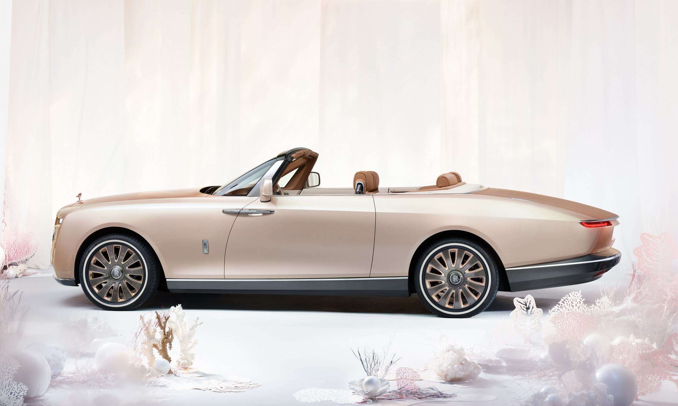 Complementing the exterior finish is the elegant cabin with cognac and oyster-colored leathers and Royal Walnut veneer. Rose gold accents can be found throughout the interior, which is hands down one of the most beautiful we have ever seen. Highlighting it’s truly a tailor-made car, the Boat Tail has a pearl supplied by its owner who comes from a family with experience in the pearling industry. This mother-of-pearl adorns the switchgear and the instrument dials and we’d argue it blends perfectly with the rest of the lavish cabin.