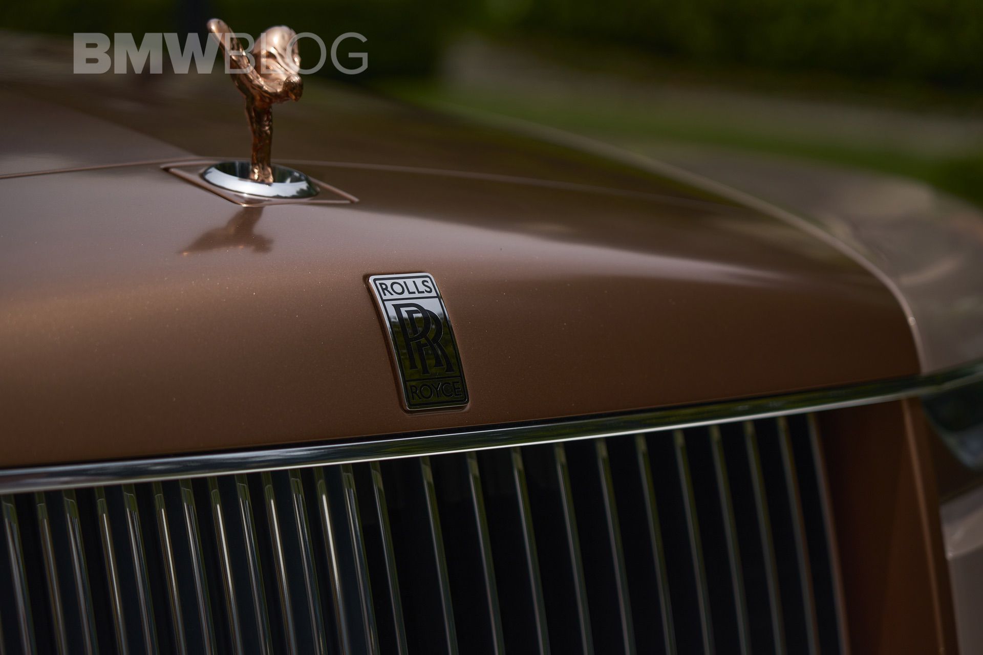 At the back, the “butterfly” opening of the compartment has been retained and bathed in walnut veneer, complete with rose gold-plated pinstripes with a satin-brushed finish. Rolls-Royce explains the customer specifically commissioned the car with the Royal Walnut since it will change its properties over time, meaning that as it matures, the cognac will look different.