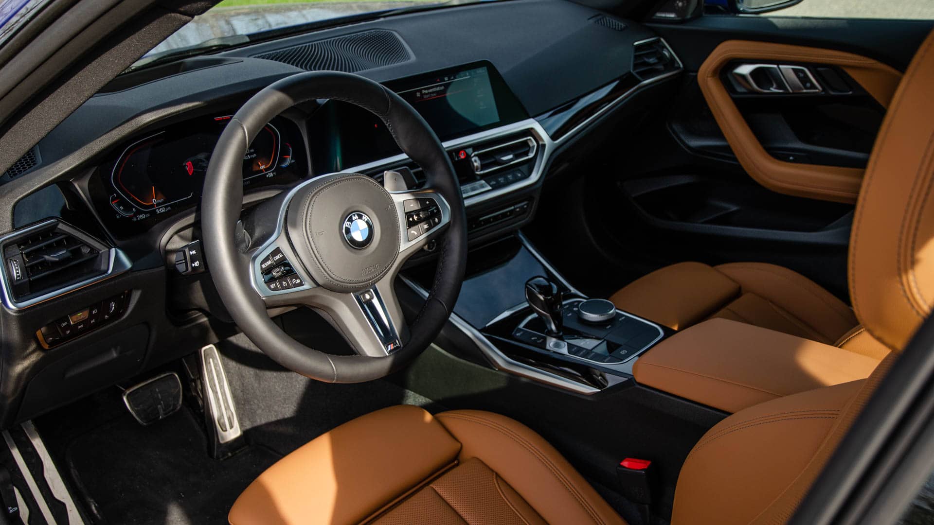 Like all 2 Series models, the BMW 230i gets iDrive 7, which is still very good but, after using iDrive 8 in the BMW iX and i4, it feels a bit antiquated at this point. However, it’s the same basic tech as almost any other BMW, so there’s really not much to discuss there. I do like the fun little lighted screens in the door panels, which seem pointless but are kinda neat.