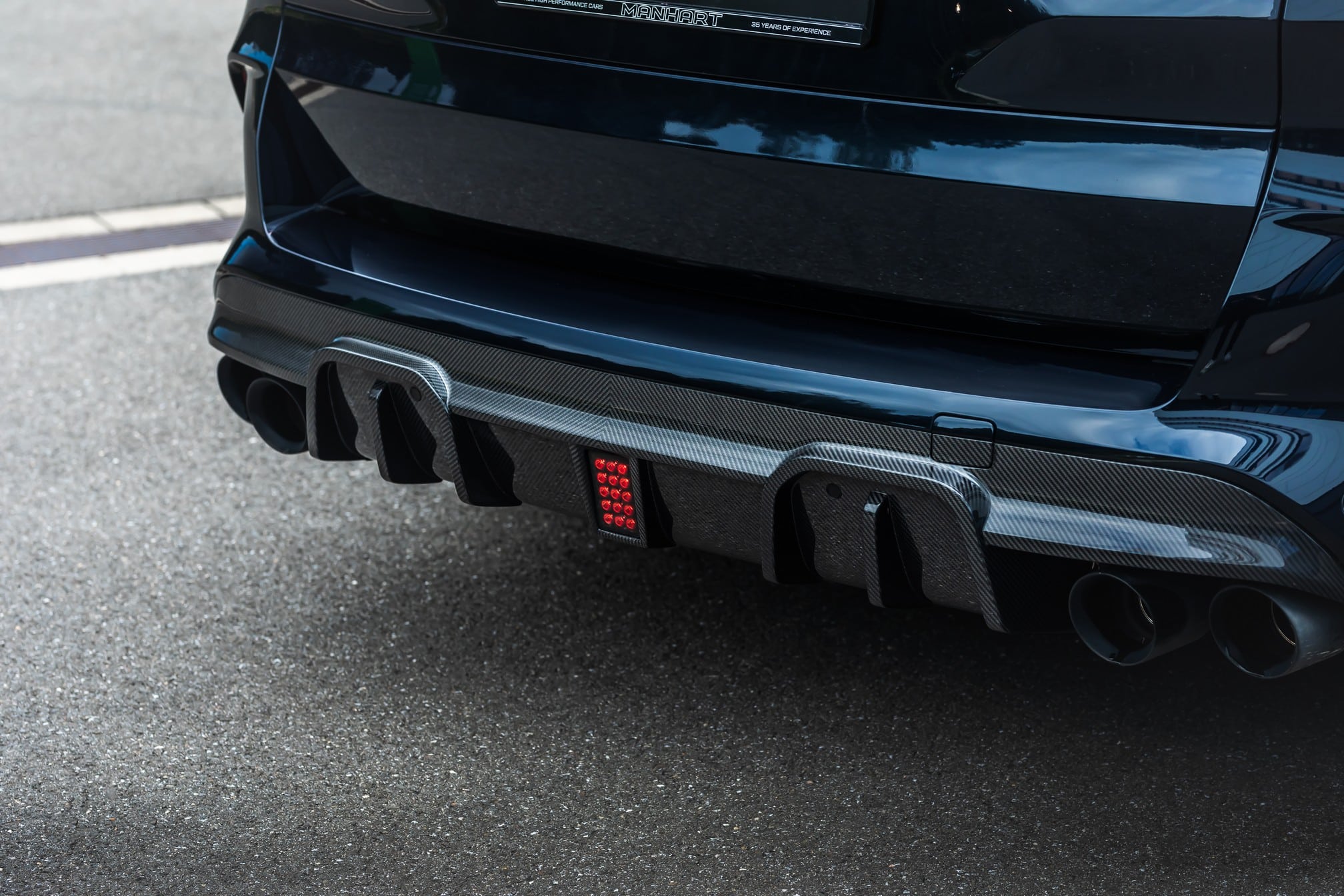 As for the tastefully configured interior, it has remained nearly stock, save for custom gearshift paddles and floor mats carrying Manhart’s signature.