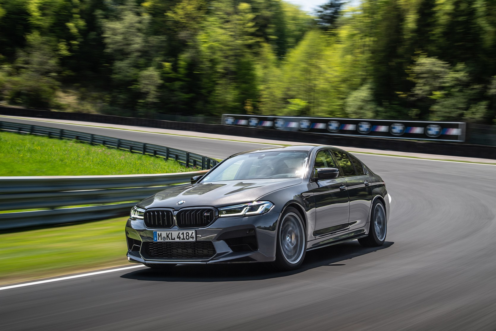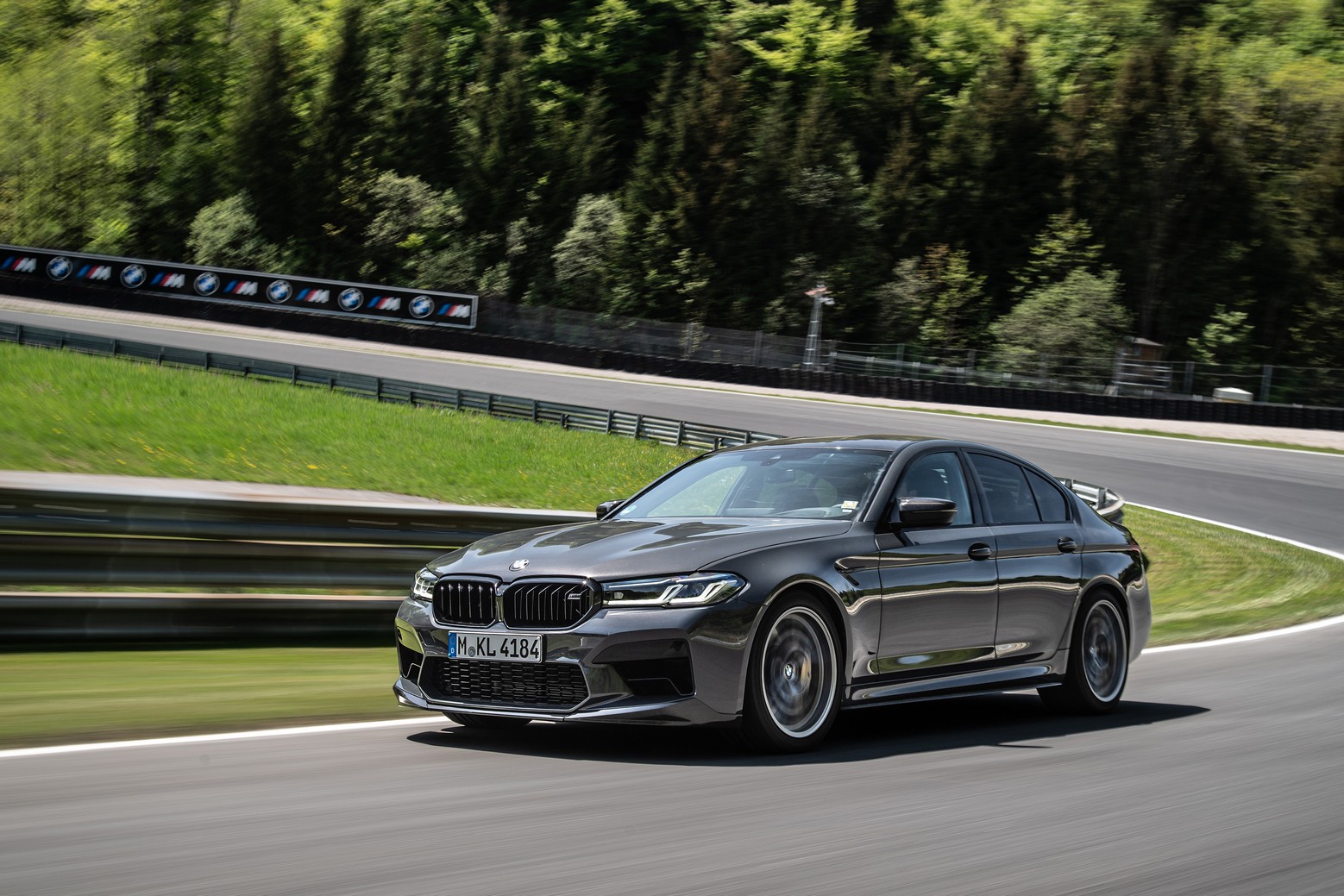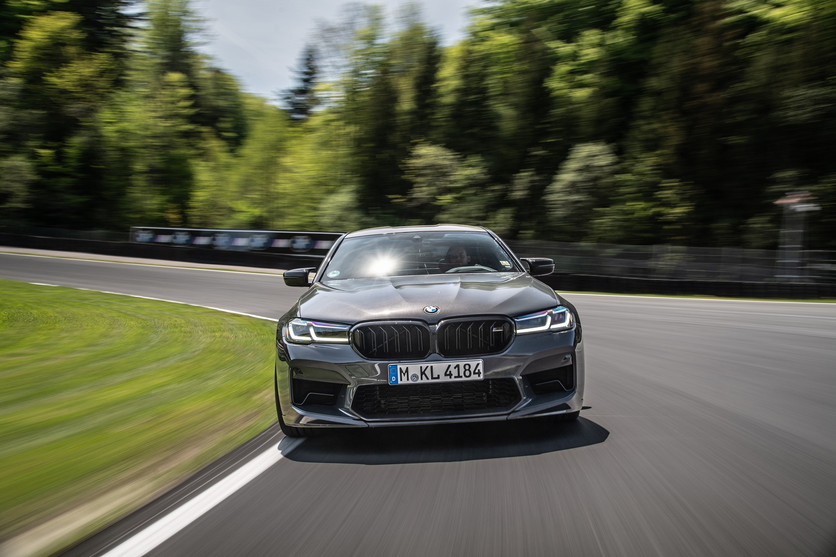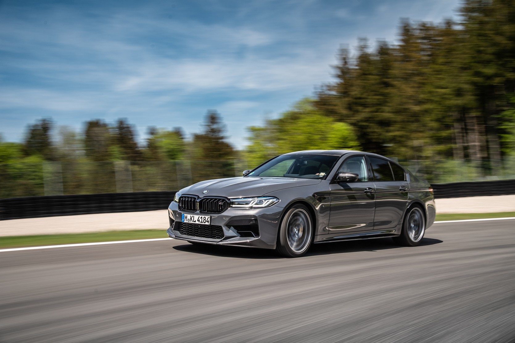Joining the Isle Of Men Green M8 Gran Coupe LCI at the BMW M Media Test drive event held during the 24-hour race weekend at the Nürburgring was this lovely M5. Not just any version of the super sedan, but the hotter Competition version decked out with a series of M Performance bits. Finished in what seems to be Alvite Grey metallic, the AMG E63 competitor has several carbon fiber upgrades, chief of which is the trunk lid spoiler.