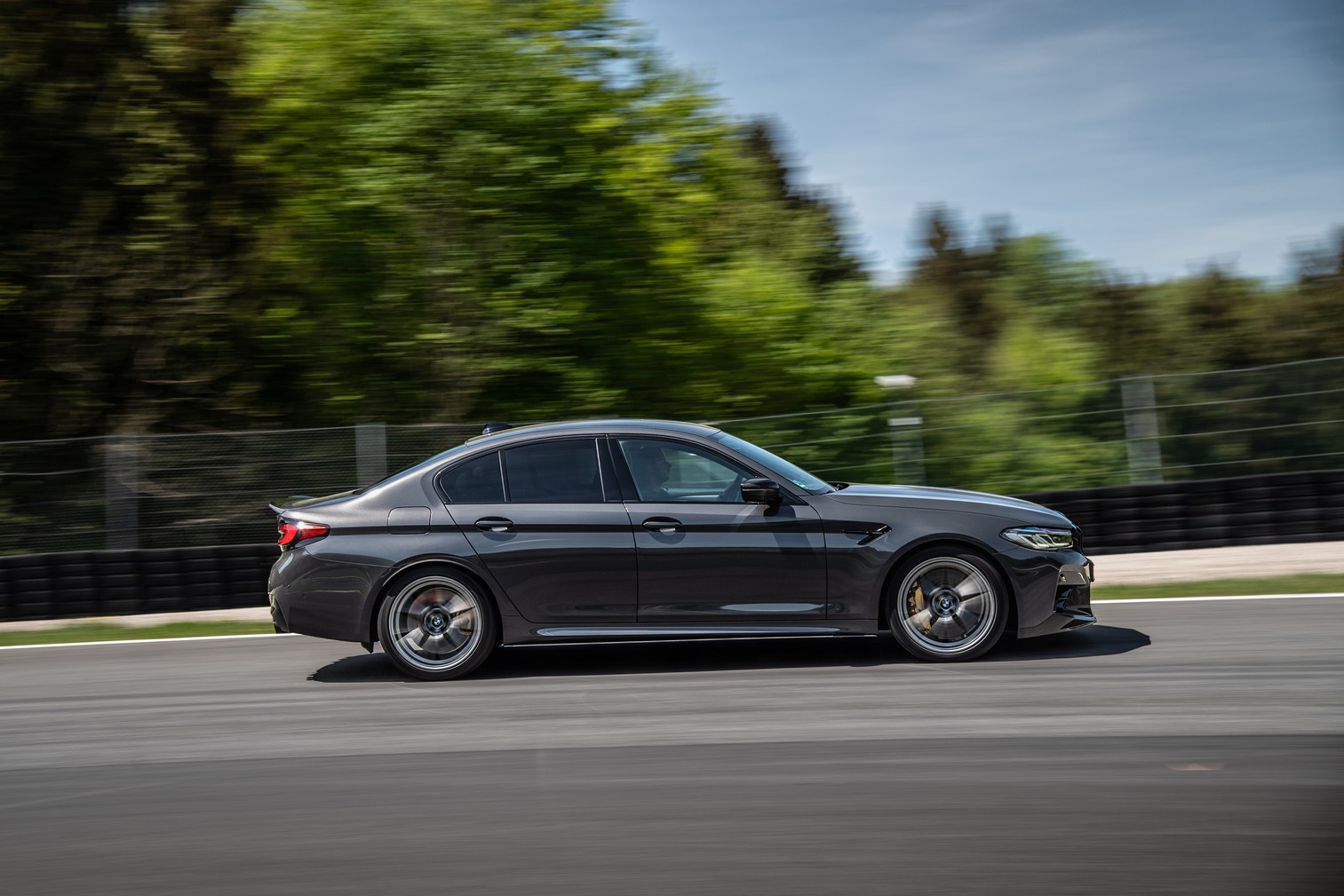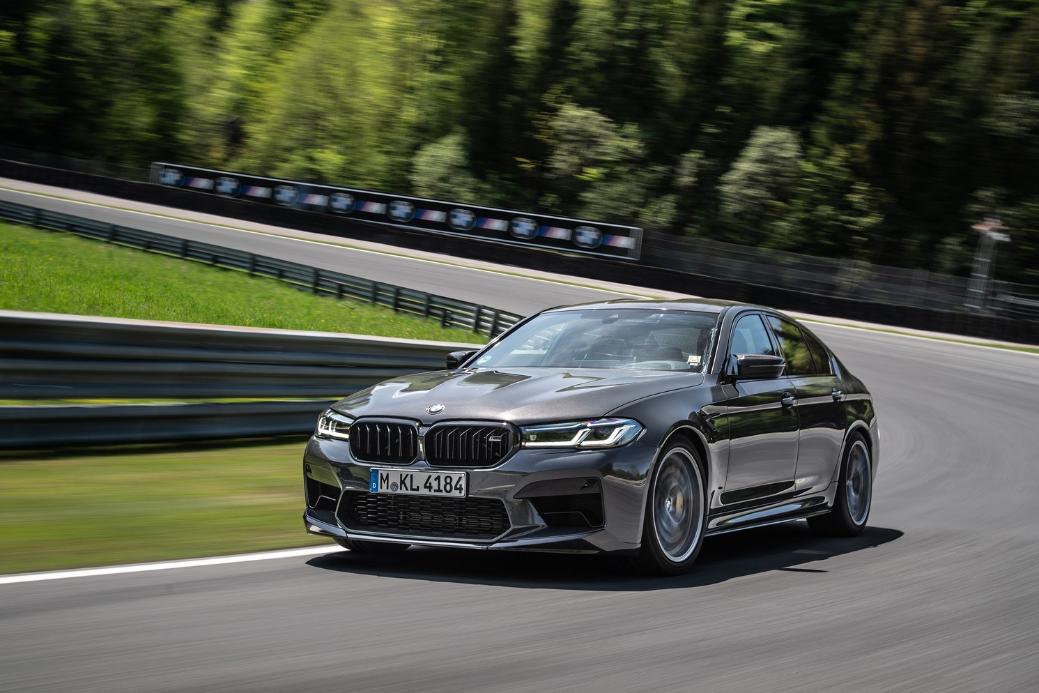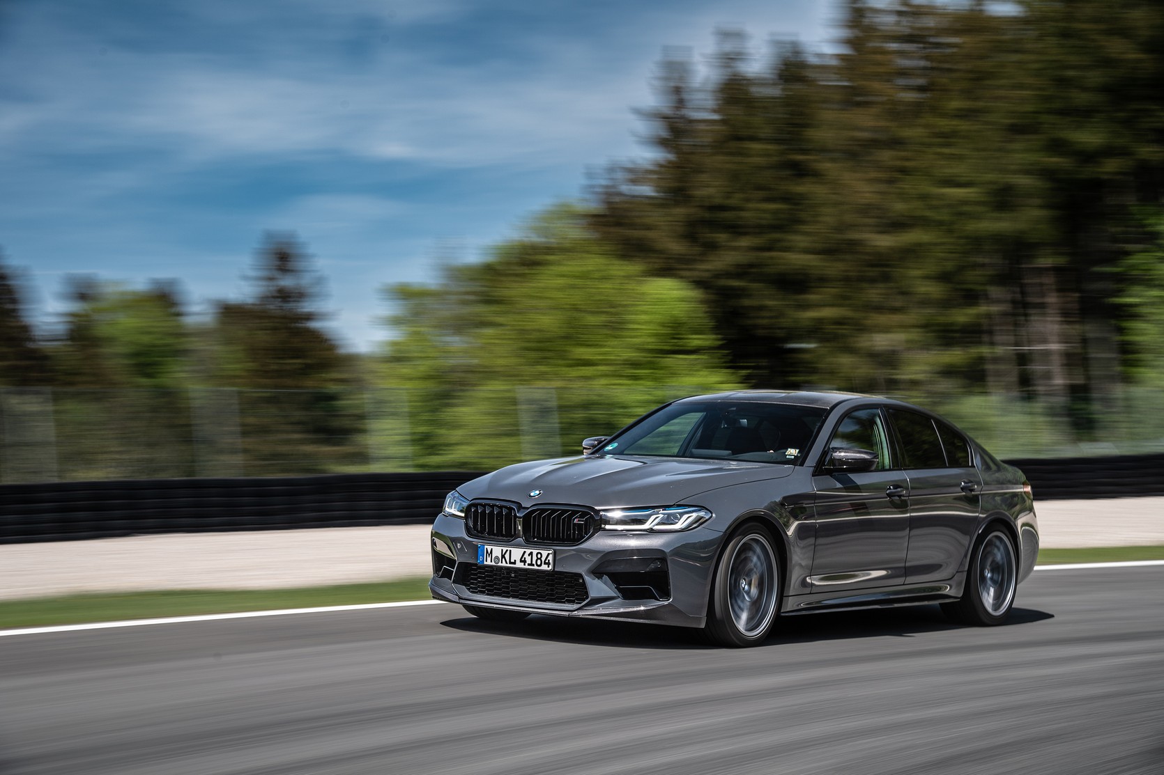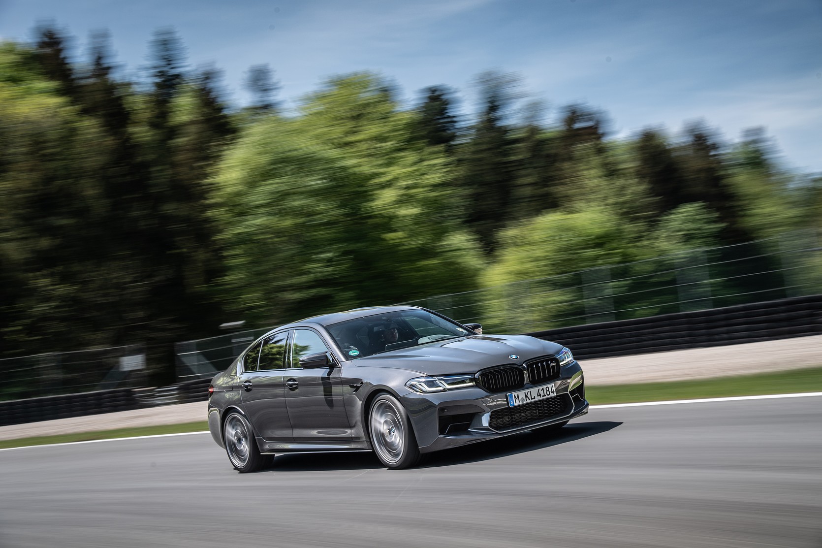 Joining the Isle Of Men Green M8 Gran Coupe LCI at the BMW M Media Test drive event held during the 24-hour race weekend at the Nürburgring was this lovely M5. Not just any version of the super sedan, but the hotter Competition version decked out with a series of M Performance bits. Finished in what seems to be Alvite Grey metallic, the AMG E63 competitor has several carbon fiber upgrades, chief of which is the trunk lid spoiler.