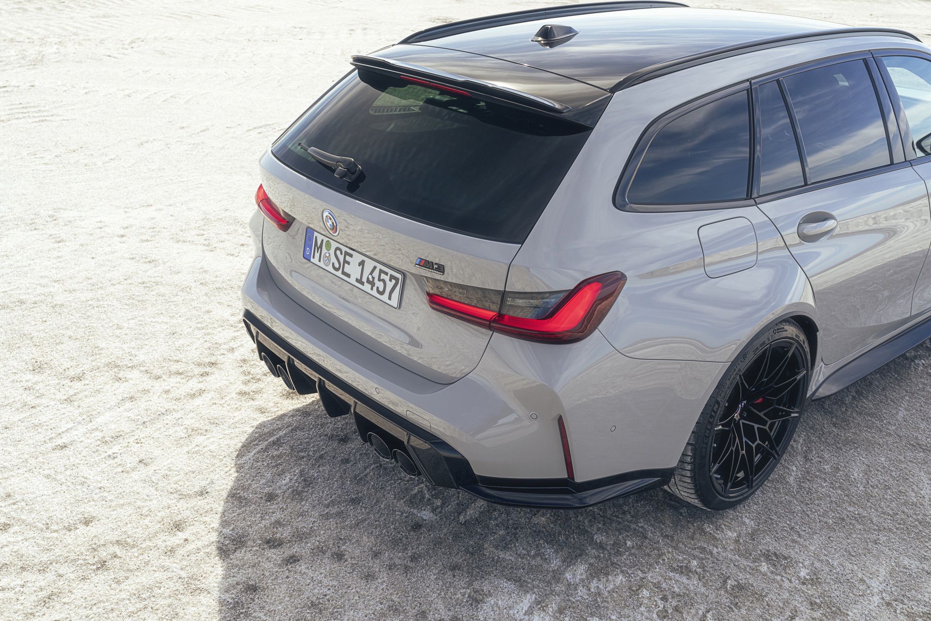 Proving a predictable car isn’t always a bad thing, the new high-performance BMW M3 Touring is indeed an M3 Sedan turned into a wagon in the best way possible. From the B-pillar forward, the two cars are virtually identical. There’s no carbon fiber roof on the estate where it comes as standard with a high-gloss black finish also applied to the roof rails. You can also have the roof in the same color as the rest of the body while the spoiler at the back was specially developed and 3D-printed for the M3 Touring.