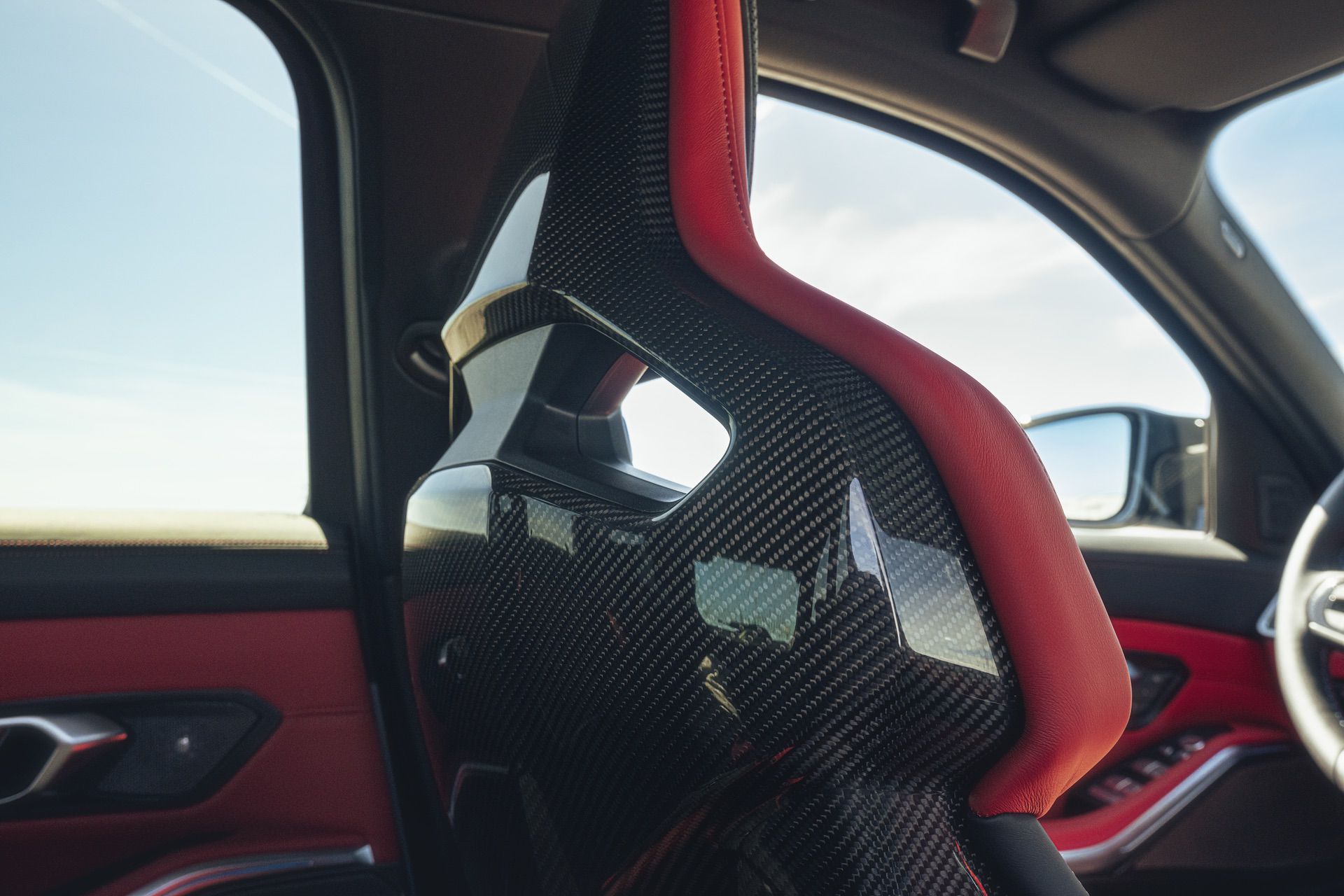 At an additional cost, the M3 Touring can be fitted with an M Race Track Package encompassing those ceramic brakes along with front bucket seats. It also includes the M Driver’s Package, track-oriented tires, and carbon fiber trim strips on the inside. Other noteworthy extras include the laser headlights found in the M3 Sedan, but they’re not the sharper-looking lights introduced with the 3 Series LCI. As for the quad 100-mm exhaust tips, they come in high-gloss black but can be optionally had in chrome as well.