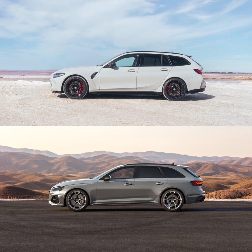 So now that the BMW M3 Touring is finally here, and BMW actually has a true competitor for the RS4, let’s take a look at their designs to see how they compare. Of course, we haven’t driven the M3 Touring yet, nor have we driven the RS4 Avant, as the former hasn’t yet been made available for media drives and the latter isn’t available in North America. Which means we can only compare styling, not driving merit.