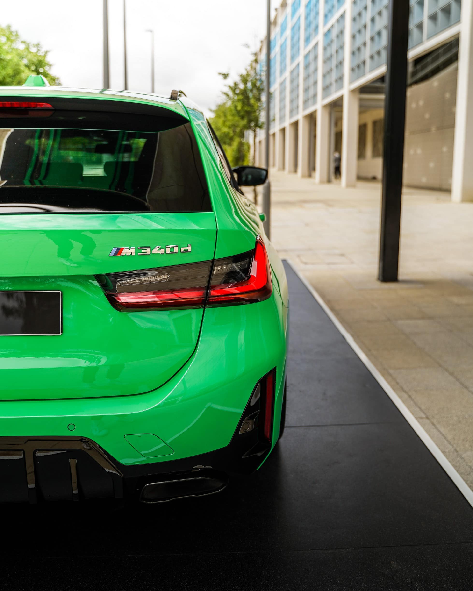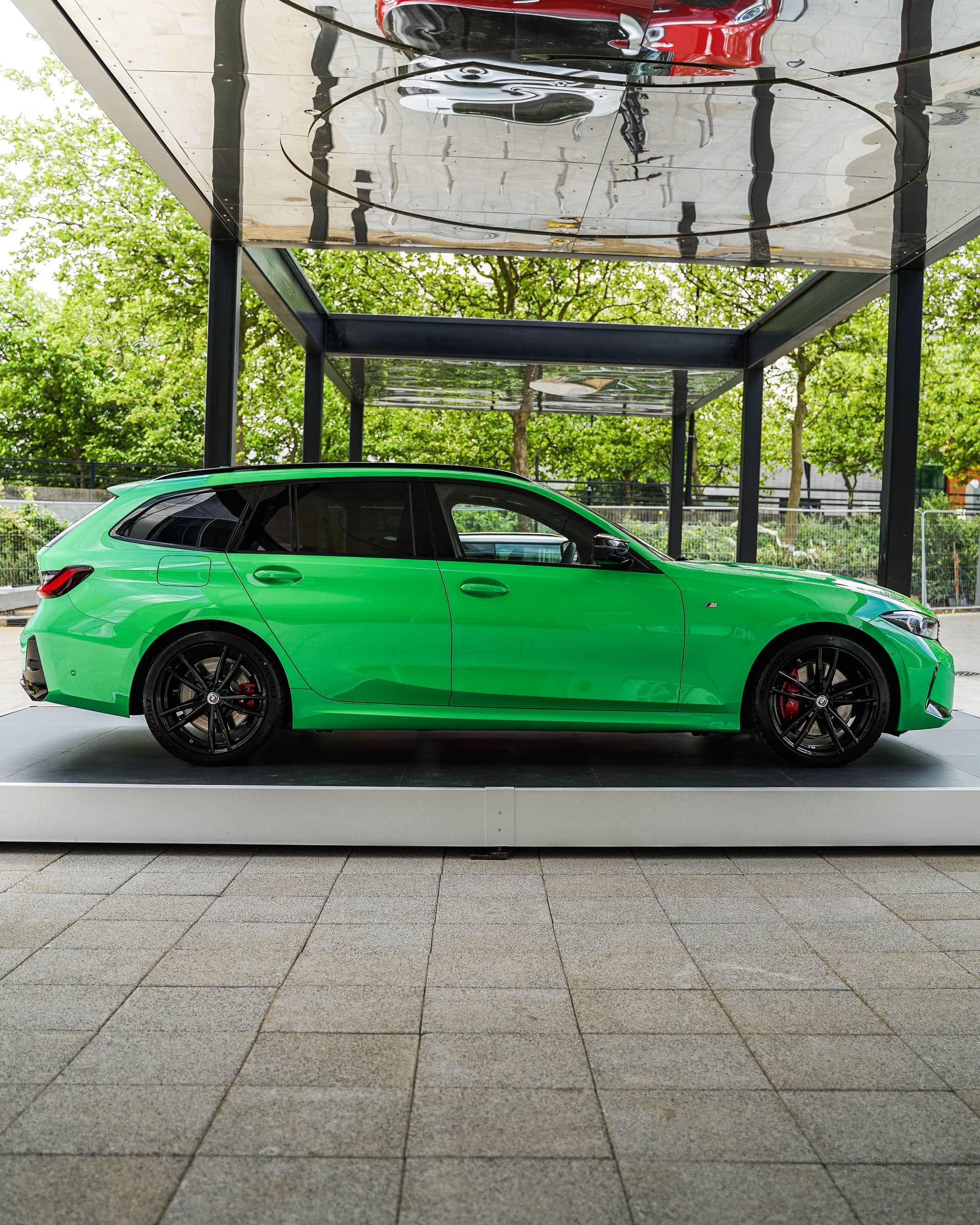 While the 3 Series LCI comes with an optional carbon-fiber roof for the M Performance models, it’s only available for the sedan. The M340d Touring captured by Tom Chappell for the Stephen James BMW Group dealership wears an individual Signal Green paint that makes any BMW stand out. The performance diesel wagon gets the vintage Motorsport emblem available until the end of the year for all M and M Sport cars.
