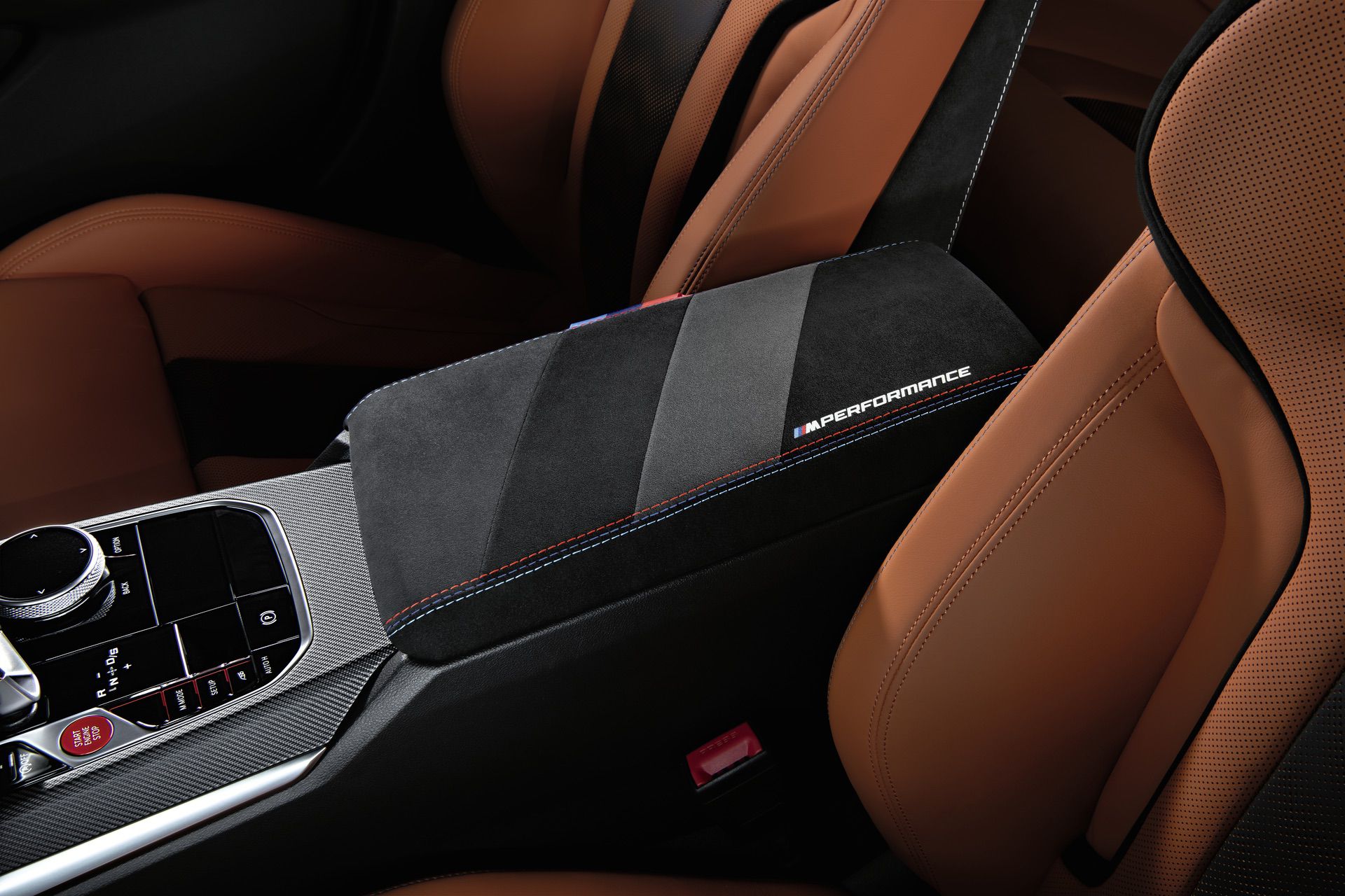 There will also be two other M Performance steering wheels, one Alcantara and one leather, M Performance carbon fiber shift paddles, an Alcantara armrest, an Alcantara kneepad, M Performance floor mats, M Performance LED door projector logos, M Performance locking pins, and an M Performance key pouch. Essentially, if you want your cabin decked out in carbon fiber and Alcantara, M Performance has you covered.
