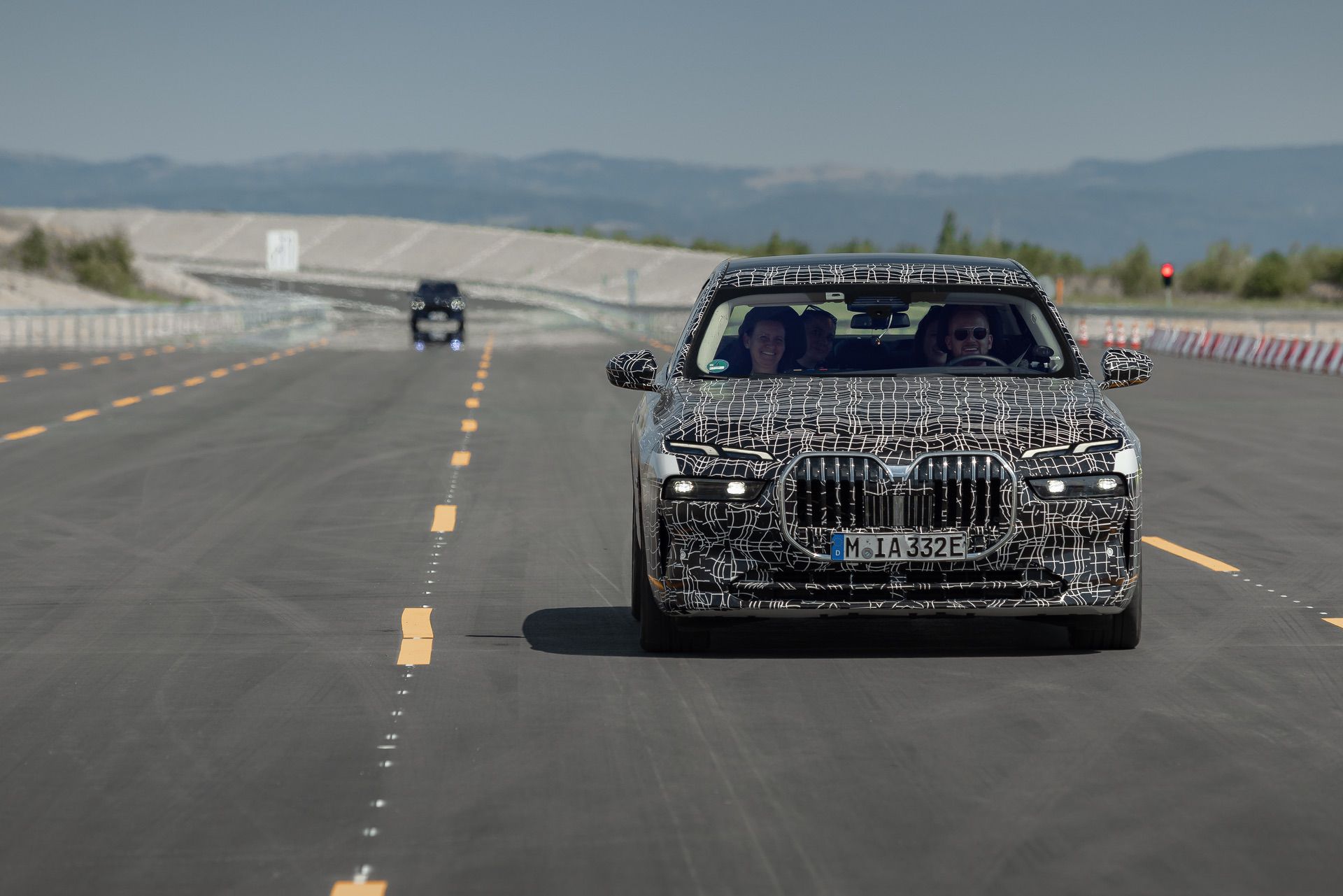Today, new photos showcase some of the BMW autonomous driving tests. We can see the new BMW 7 Series (G70), the purely electric BMW iX (i20) , the BMW X1 (U11) and the 2 Series Active Tourer (U06) going through a series of testing scenarios. The simulations include both highway and roads tests, including on- and off-ramp scenarios for testing autonomous vehicles on motorways. The test motorway has been equipped with two functional lanes and an emergency stop lane as well as gantries and a straight stretch measuring over 1,000 meters.