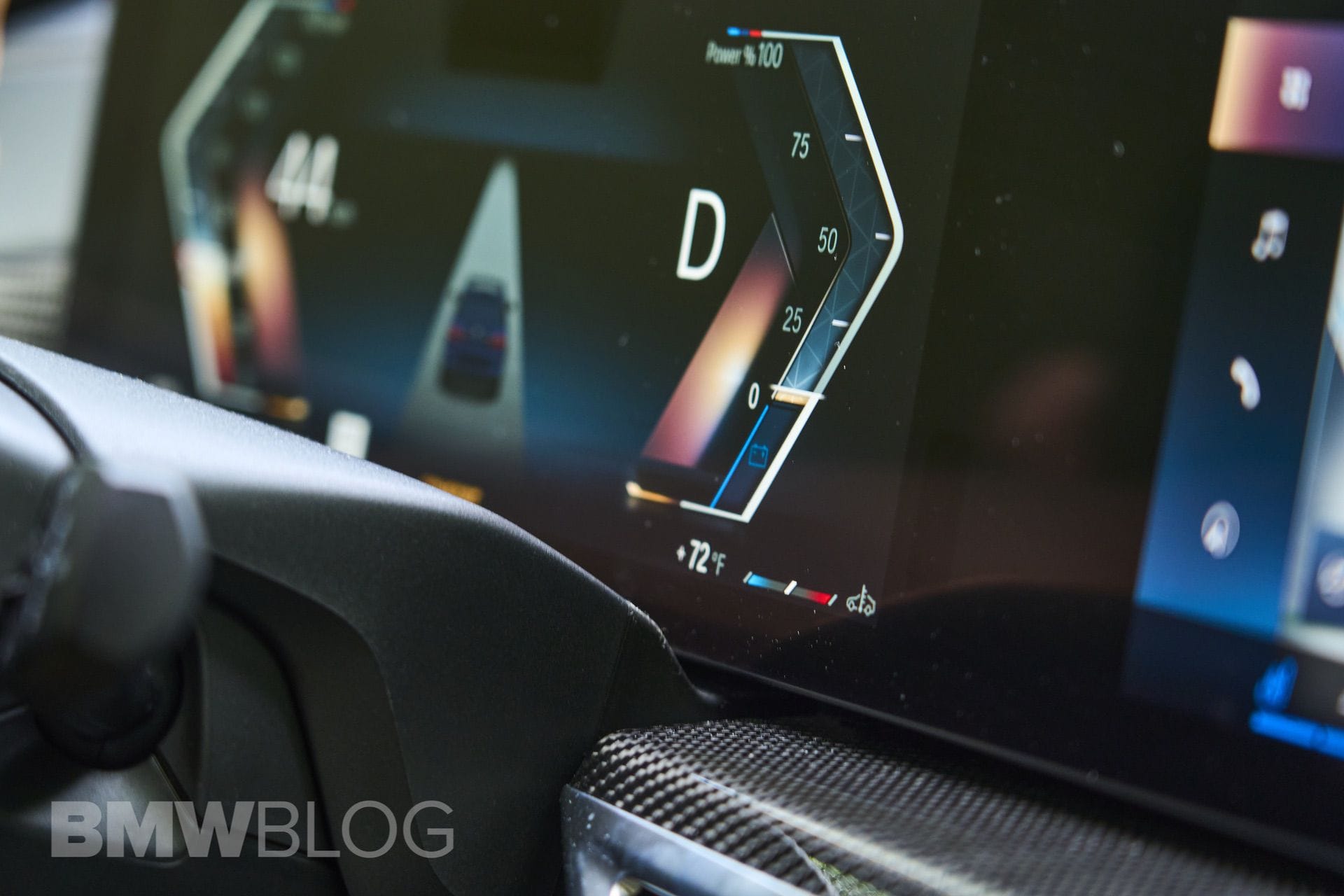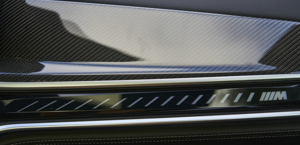 Also, there are some other really interesting color options for the 2023 BMW X7 Facelift: Sparking Copper Metallic, Skyscraper Grey and Manhattan Green Metallic. Inside, there are several different excellent options to choose from, even if they’re all pretty standard for modern BMW luxury cars. In this particular BMW X7 M60i, Merino black leather is present on the seats, paired with a carbon fiber trim on the dashboard and center console. It’s the very same place where the new interaction bar (lightbar) really shines. Based on the driving mode, or by simply changing the ambient light, the interaction bar offers a new way to interact with your by light.