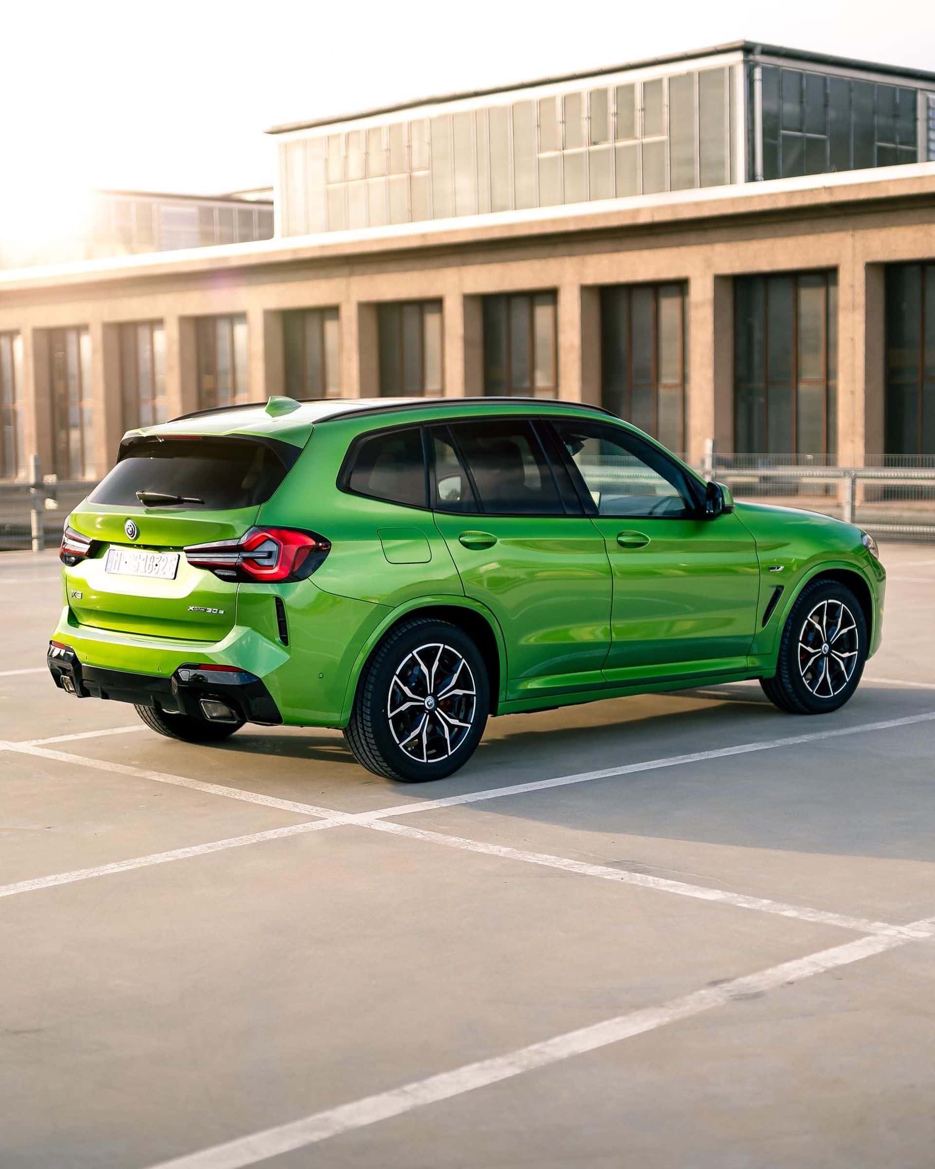 Java Green is one of the most popular BMW Individual colors. But it’s usually a paint job we see on a BMW M sportscar. Today, the vibrant green lands on the refreshed BMW X3 xDrive30e. Courtesy of @haberkornphotography, we get to see this X3 30e Java Green from upclose, featuring also a series of M Performance upgrades. The plug-in hybrid is equipped with the M Sport Package which brings a series of visual upgrades: M Sport brakes with red calipers, M wheels, blacked out kidney grilles and air intakes, and a carbon fiber trim inside the car.