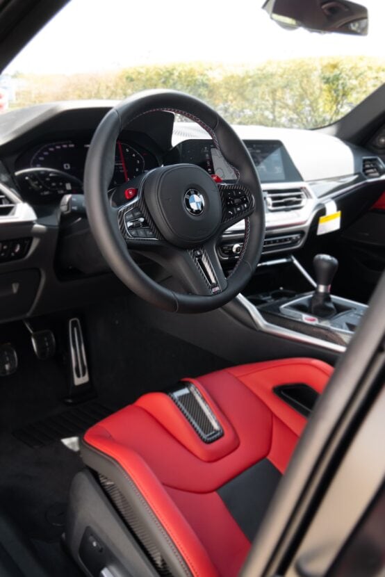 Seen at Hendrick BMW, this 2022 BMW M3 is a standard model, meaning it uses the twin-turbocharged 3.0-liter inline-six with 473 horsepower and 479 lb-ft of torque. But it also means it has a six-speed manual, making it the preferred choice for many enthusiasts. And you know this customer chose the standard car specifically for its manual transmission and not its lower price because its options list likely pushed its price well past the M3 Competition’s.