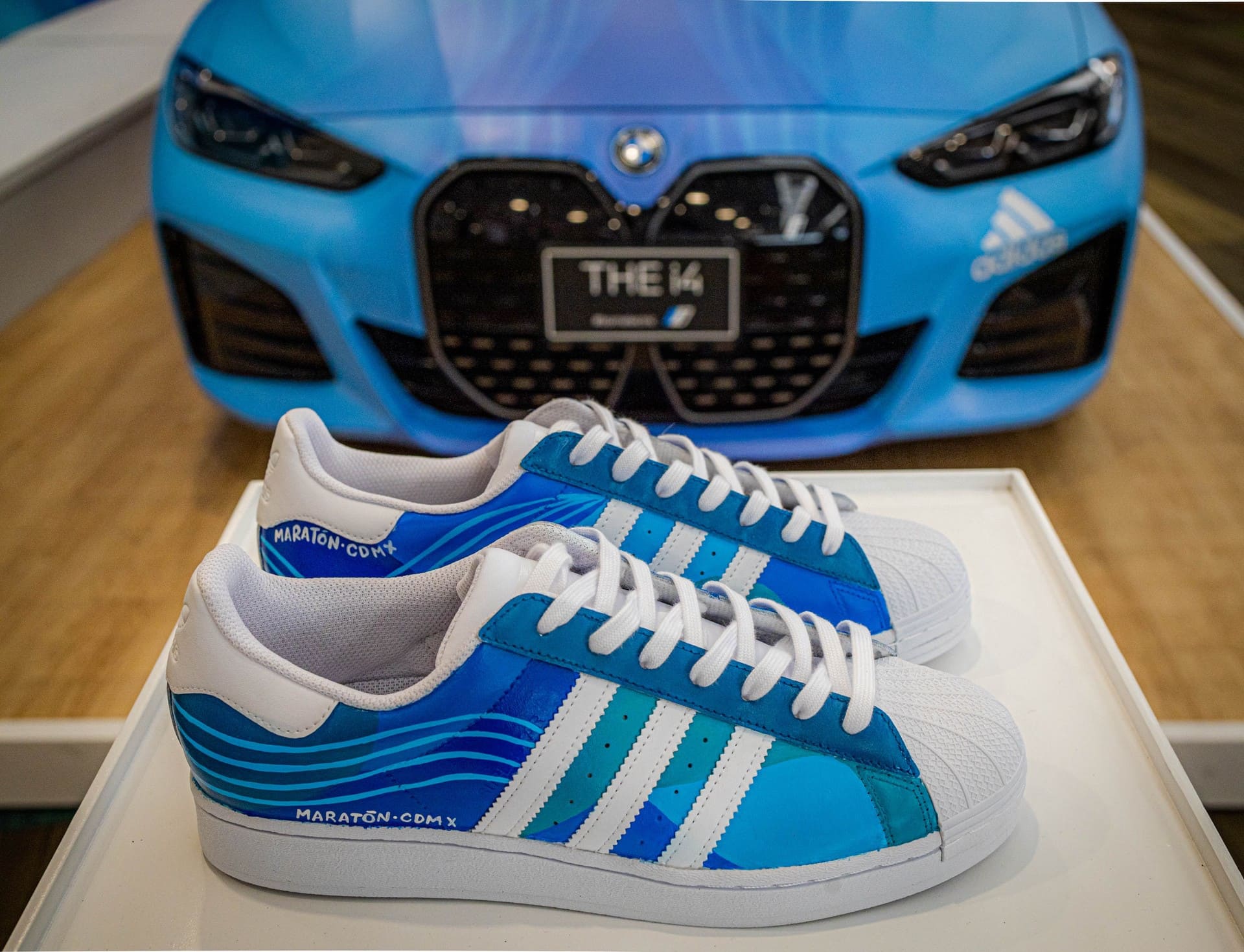 The background to the light blue special Adidas Superstar edition comes from BMW’s commitment to the most recent marathon in Mexico City. The event took place in the Mexican capital on Sunday, August 28 where around 30,000 runners participated. BMW accompanied the 42,195 km of the route with a fleet of fully electric vehicles from its BMW i, MINI and BMW Motorrad model ranges. One of them was a blue-painted BMW i4.