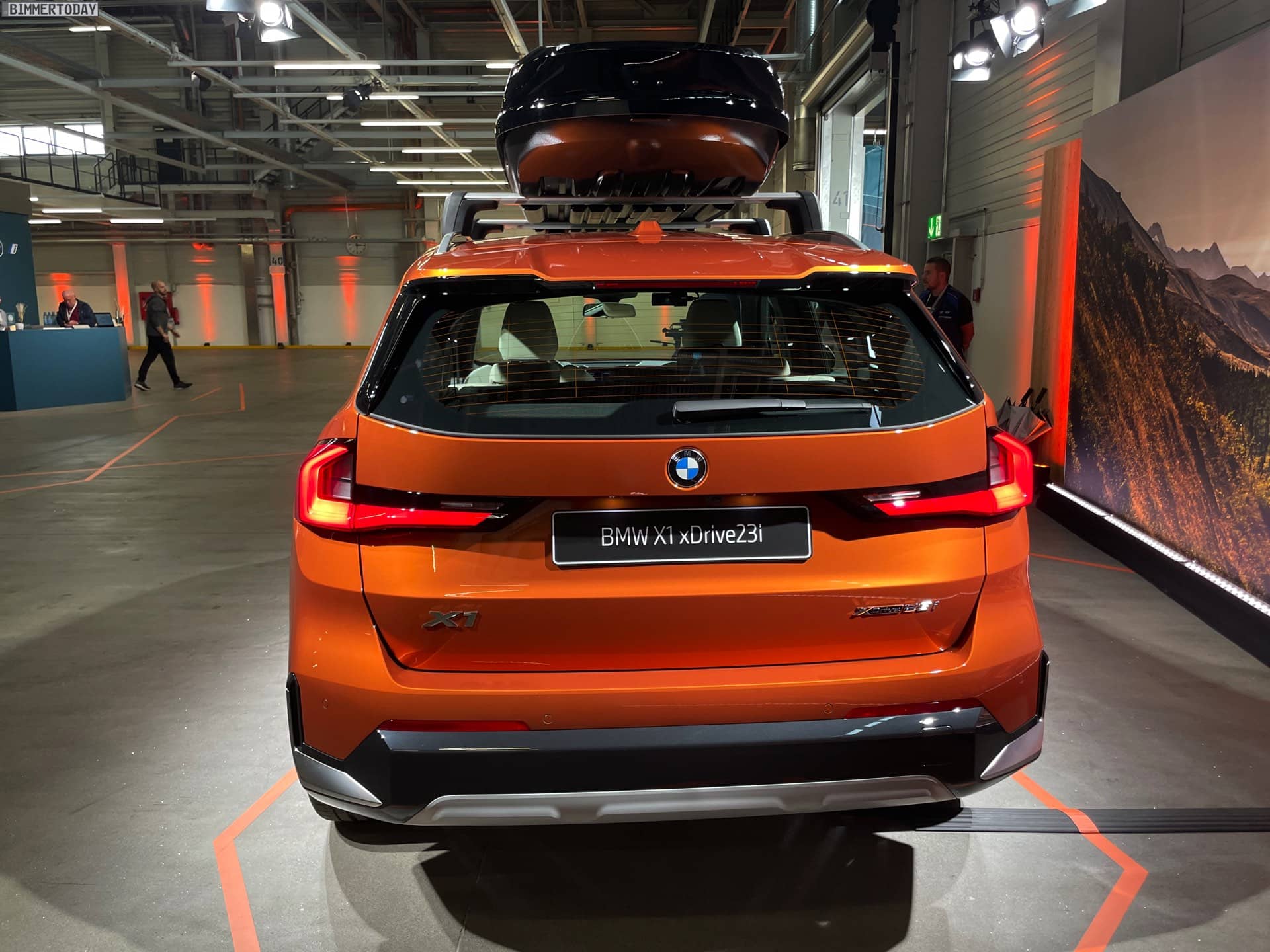 Courtesy of BimmerToday, we bring you some exclusive photos of the 2023 BMW X1 with new accessories. The new X1 is painted in Utah Orange and optioned with the xLine package. Of course, the roof box from the BMW range of accessories is particularly eye-catching. The box will bring additional cargo space to the refreshed X1. Other accessories include 21-inch light alloy wheels double-spoke 877 Bicolor and they come with BMW floating center caps.