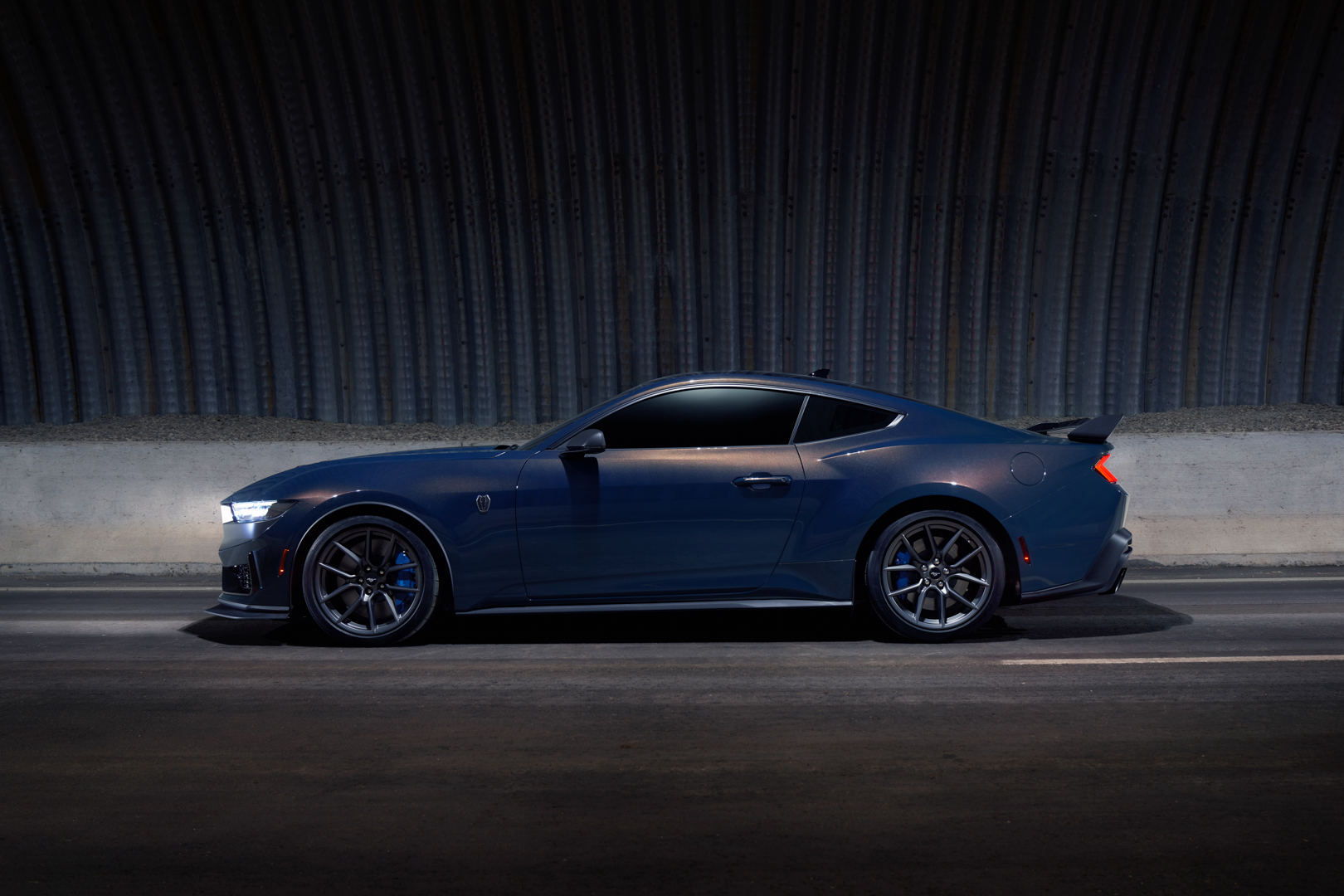 Under the hood is the latest iteration of the 5.0-liter naturally aspirated Coyote V8. Ford didn’t release any exact figures for the Dark Horse model but claims around 500 horsepower. It will be paired with a six-speed Tremec manual as-standard, with a ten-speed auto as an option. Rear-wheel drive, with a limited-slip rear diff, is the only option.