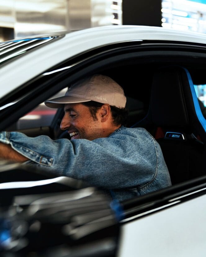 NYC-based KITH is preparing for a second car collaboration with BMW. KITH’s owner Ronnie Fieg has just teased the collaboration on his Instagram account. Fieg also sat down with BMW-M Magazine to talk about his personal connection with BMW and share his car collection. His previous collaboration with BMW delivered 150 units of the M4 Competition which were sold out in minutes. Fieg wouldn’t reveal yet which BMW model he worked on next, but in one of his Instagram posts he’s seen wearing a varsity jacket with a BMW Elektro-Auto text.