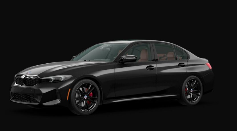 The sports saloon in question is the xDrive model finished in Black Sapphire Metallic complemented by the dark kidney grille and optional black 19-inch wheels. For a splash of color, the brake calipers come in red and the car was configured with the 50 years of M anniversary emblems. With the LCI, the M340i received M-styled side mirrors as well as the slimmer and sharper-looking headlights installed on the lesser 3er versions.