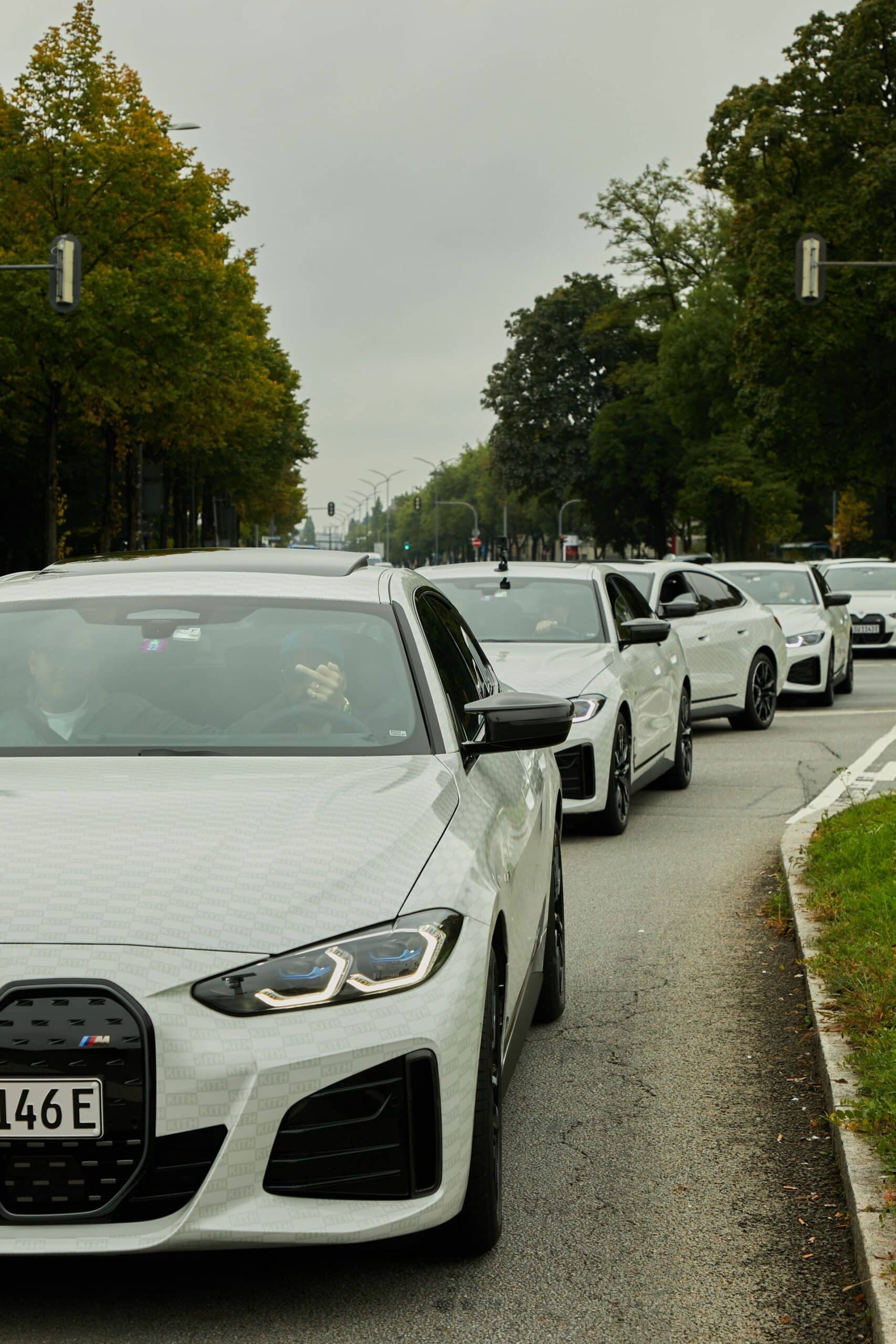 The new project does away with combustion engines since it’s based on the i4 M50. It’s not your typical product launch since KITH organized an extended trip through several countries with 16 close friends and members of the family, among them Super Bowl winner, Victor Cruz. They had the opportunity to ride inside the first M Performance electric car, featuring a white body adorned with a bespoke KITH monogram pattern. The starting point was at BMW Classic to see some of Bavaria’s greatest hits before heading to BMW Welt to take delivery of no fewer than eight cars.